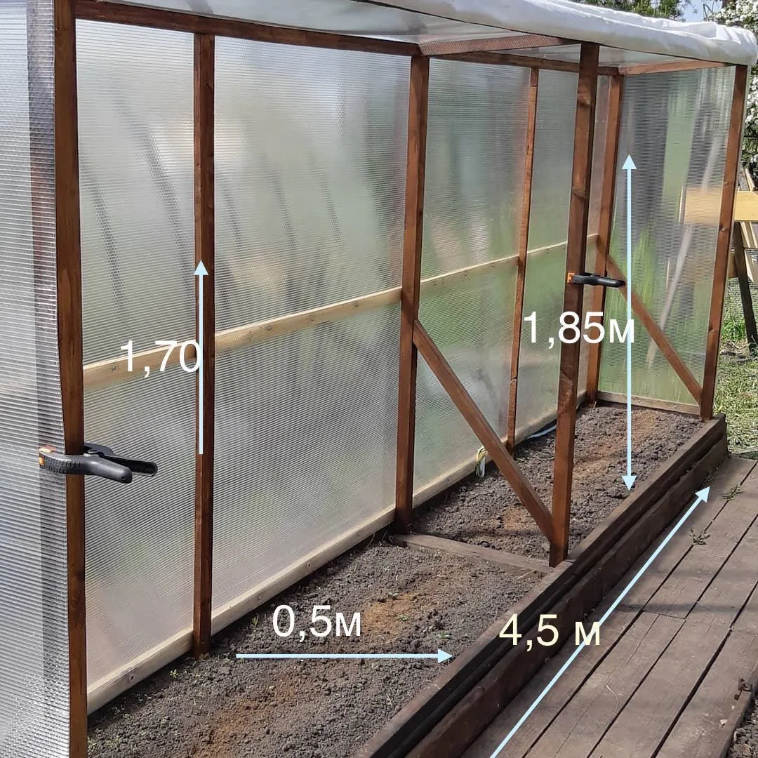 Снизу расположена грядка из доски 5см размером 55см*4,5м