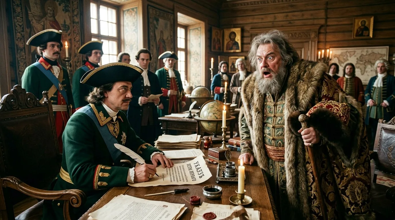 Стал искать - была ли отмена этого указа Петра. И обнаружил, что по мнению некоторых исследователей, такого документа Пётр Первый никогда не издавал. То есть, чья-то современная интернет-шутка стала распространённым фейком. Всего лишь.