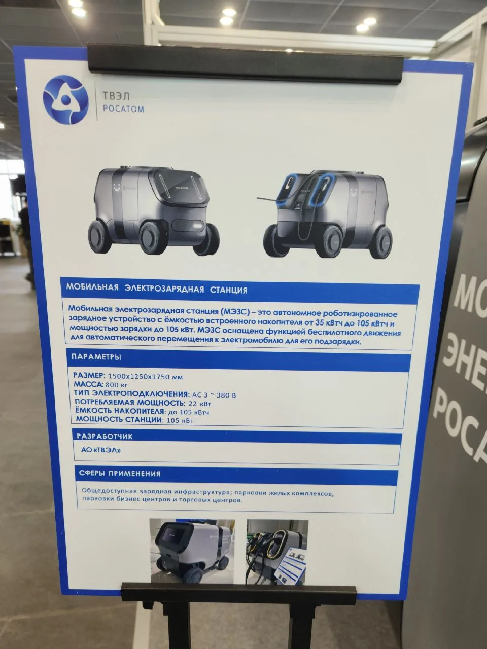 Как объяснил представитель "ТВЭЛ", - в периоды пиковых нагрузок такие мобильные беспилотные станции подъезжают к электромобилям и заряжают их, чтобы снизить нагрузку на центральную систему.