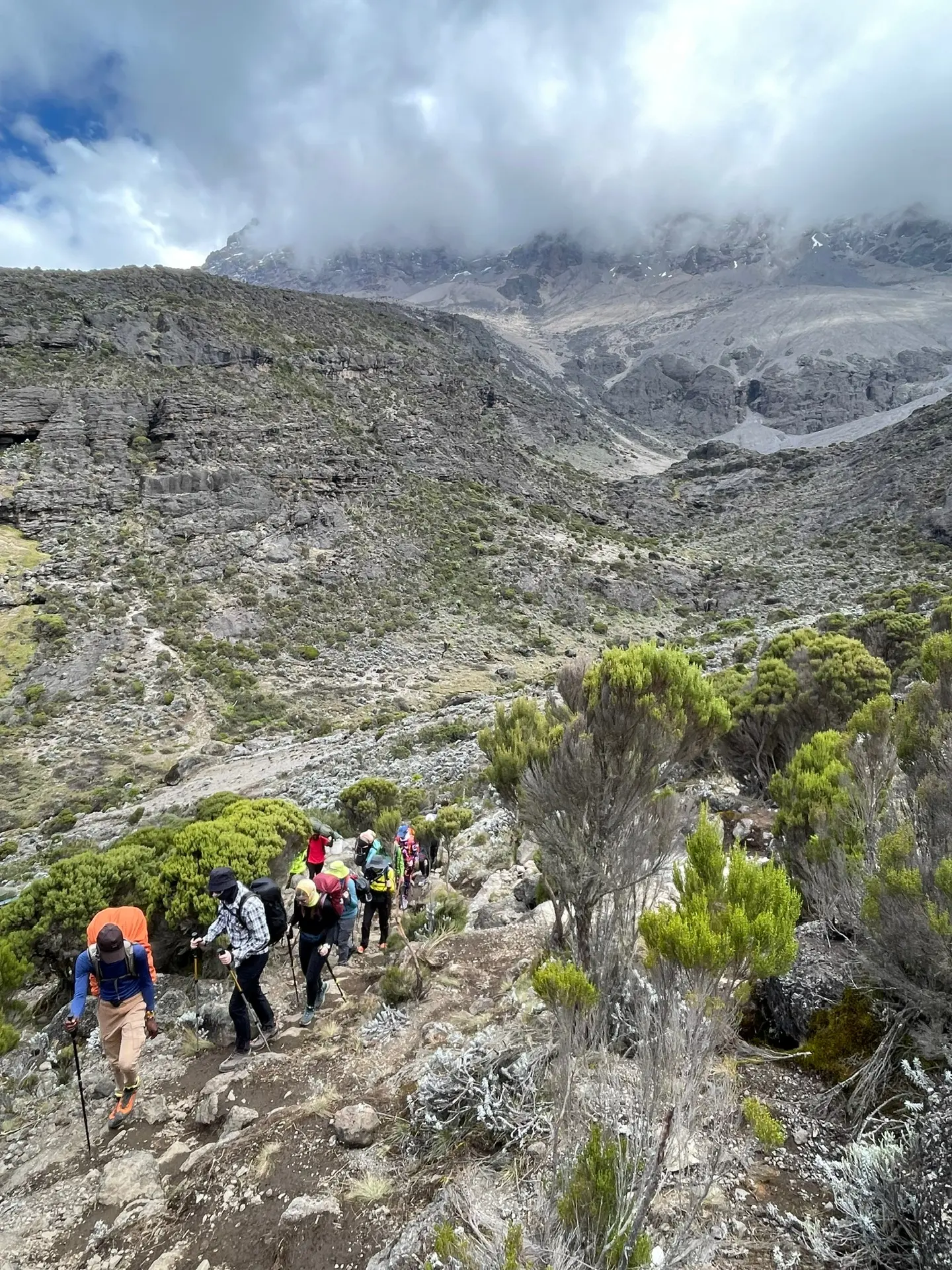 Наша команда переходит в лагерь Каранга - один день из восхождения на Килиманджаро.