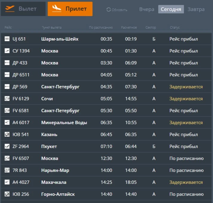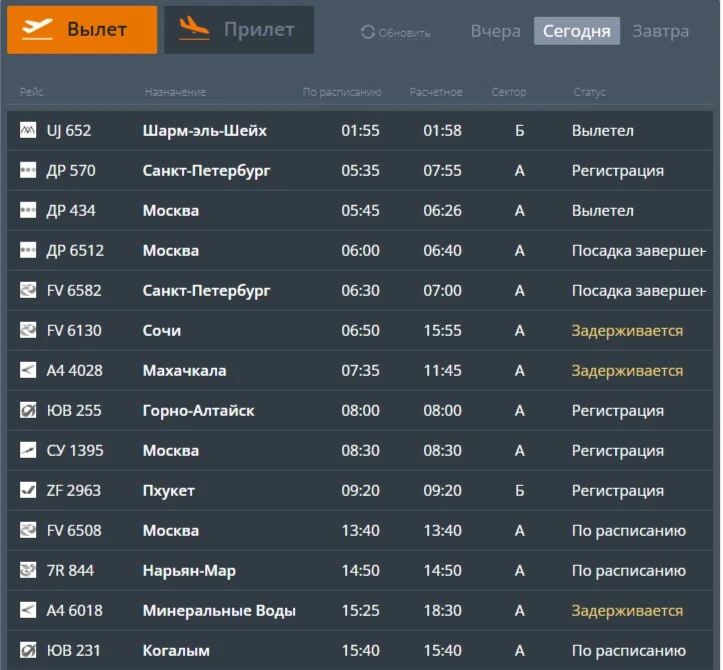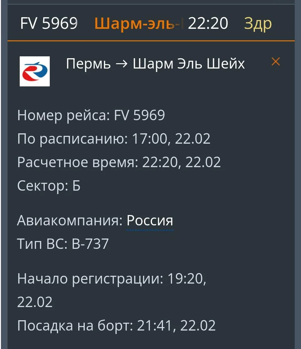 Рейс Пермь — Шарм-эль-Шейх сегодня задерживается на прибытие и вылет применерно на пять часов.