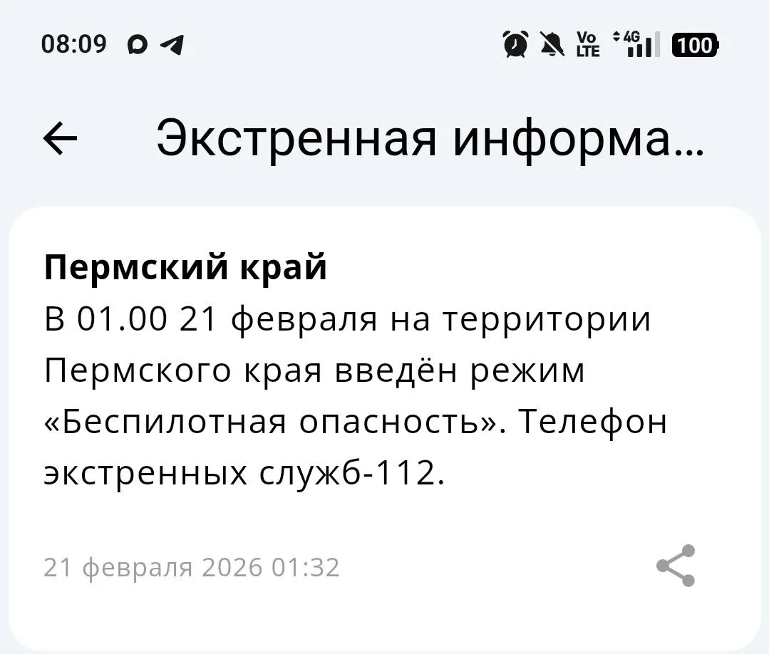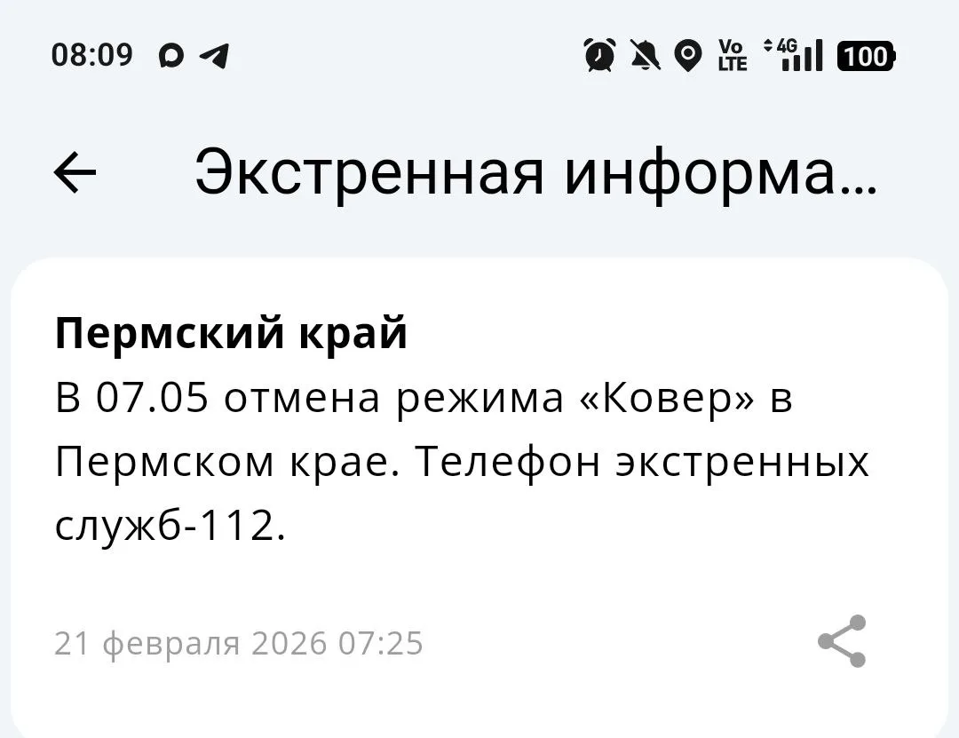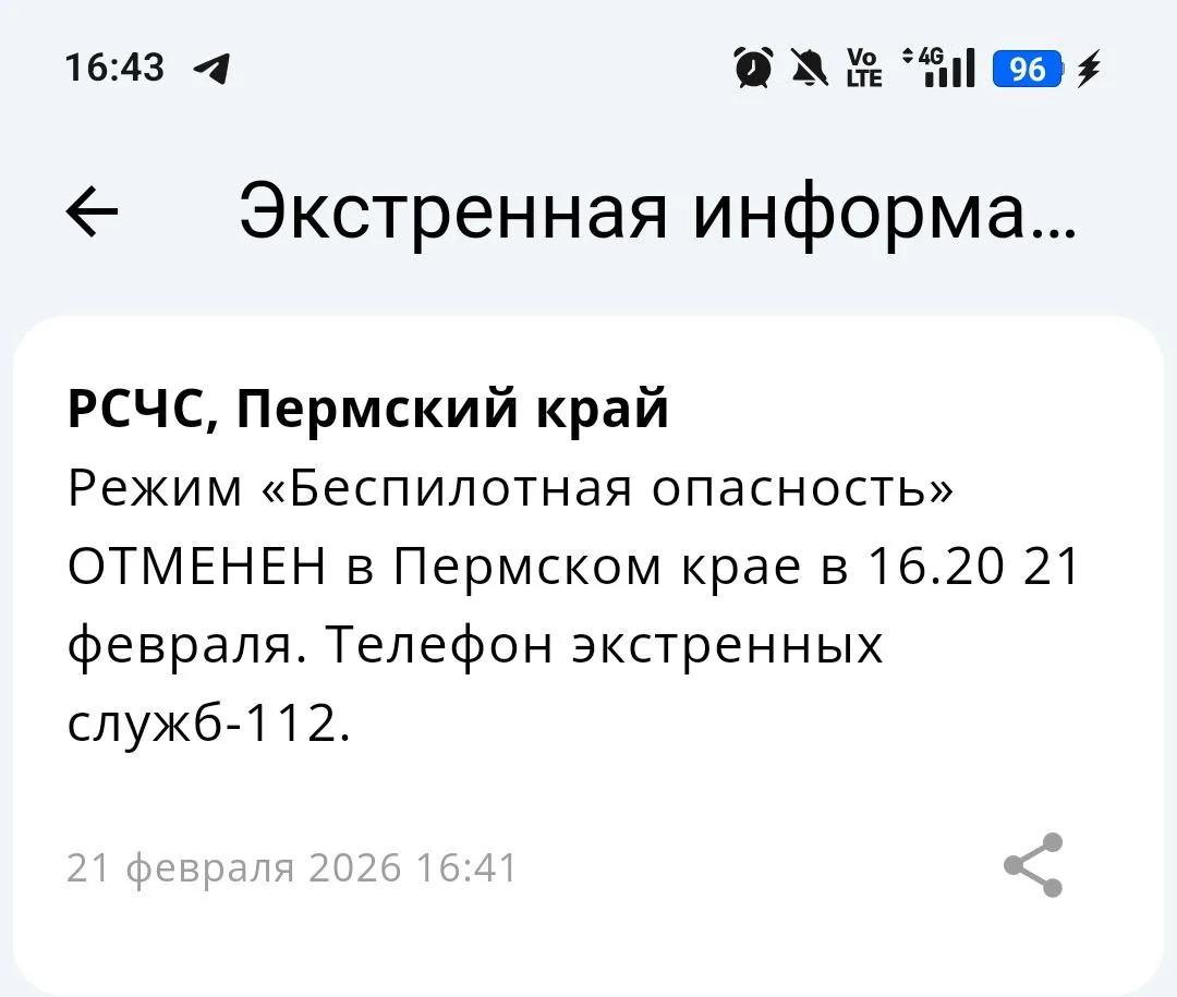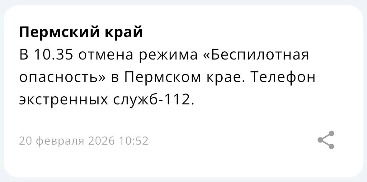 Режим «Беспилотной опасности» в Пермском крае отменен.