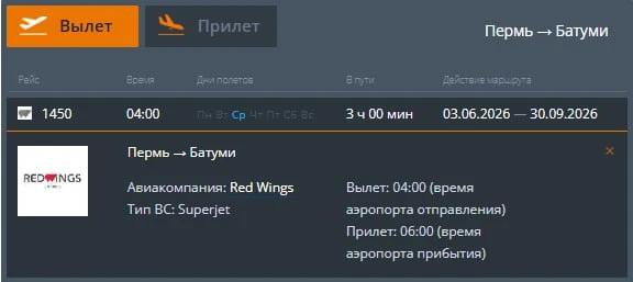 FV 6129 из Сочи приземлится в Перми в 14:55 вместо 05:05.