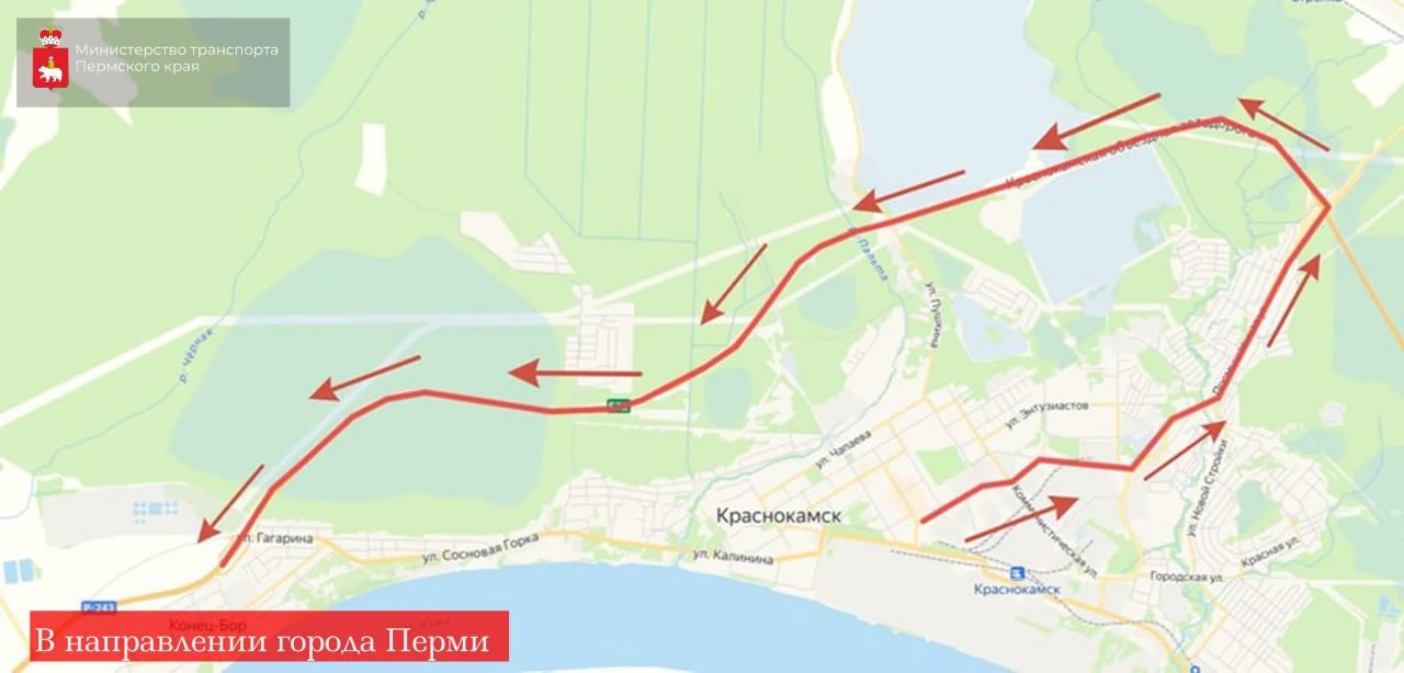 Для водителей, следующим в сторону краевой столицы, организован объезд: на 265-м километре нужно свернуть через посёлок Киргишаны, далее двигаться в направлении посёлка Бисерть и выезжать обратно на трассу на 258-м километре.