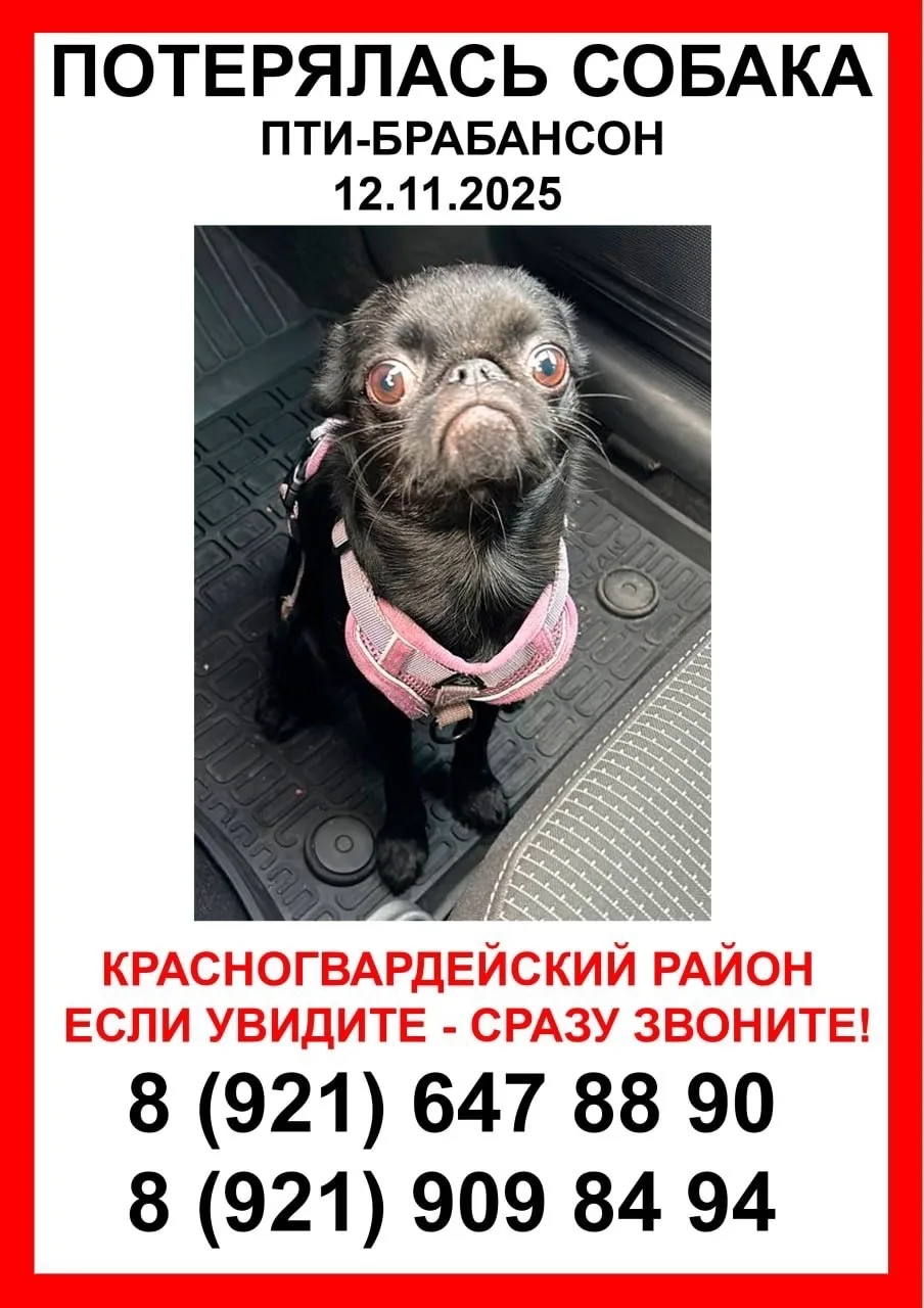 12.11.2025 потерялась маленькая собака девочка породы пти-брабансон черного окраса.