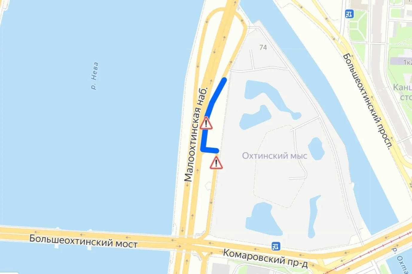По 9 сентября 2026 года ограничено движение по Малоохтинской набережной от Большеохтинского до Малоохтинского моста. Причина — производство работ по размещению временных ограждений.