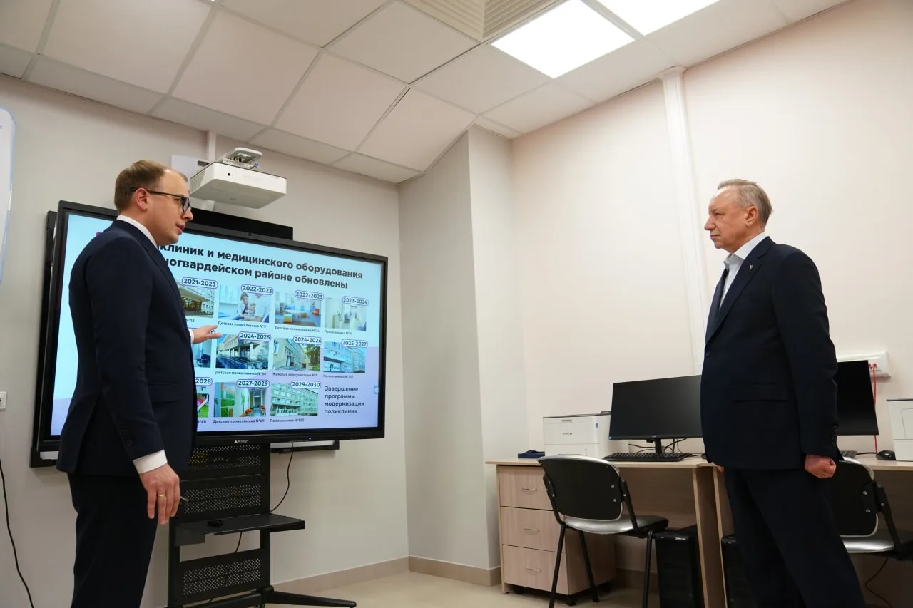 В поликлинике №132 представил Александру Дмитриевичу планы развития сети учреждений здравоохранения района. Благодаря поддержке Правительства Санкт-Петербурга в 2025 году мы завершили модернизацию 95% поликлиник района и обновление медицинского оборудования. В этом году откроем женскую консультацию №9, кабинет врача-педиатра и акушера-гинеколога на проспекте Энергетиков.