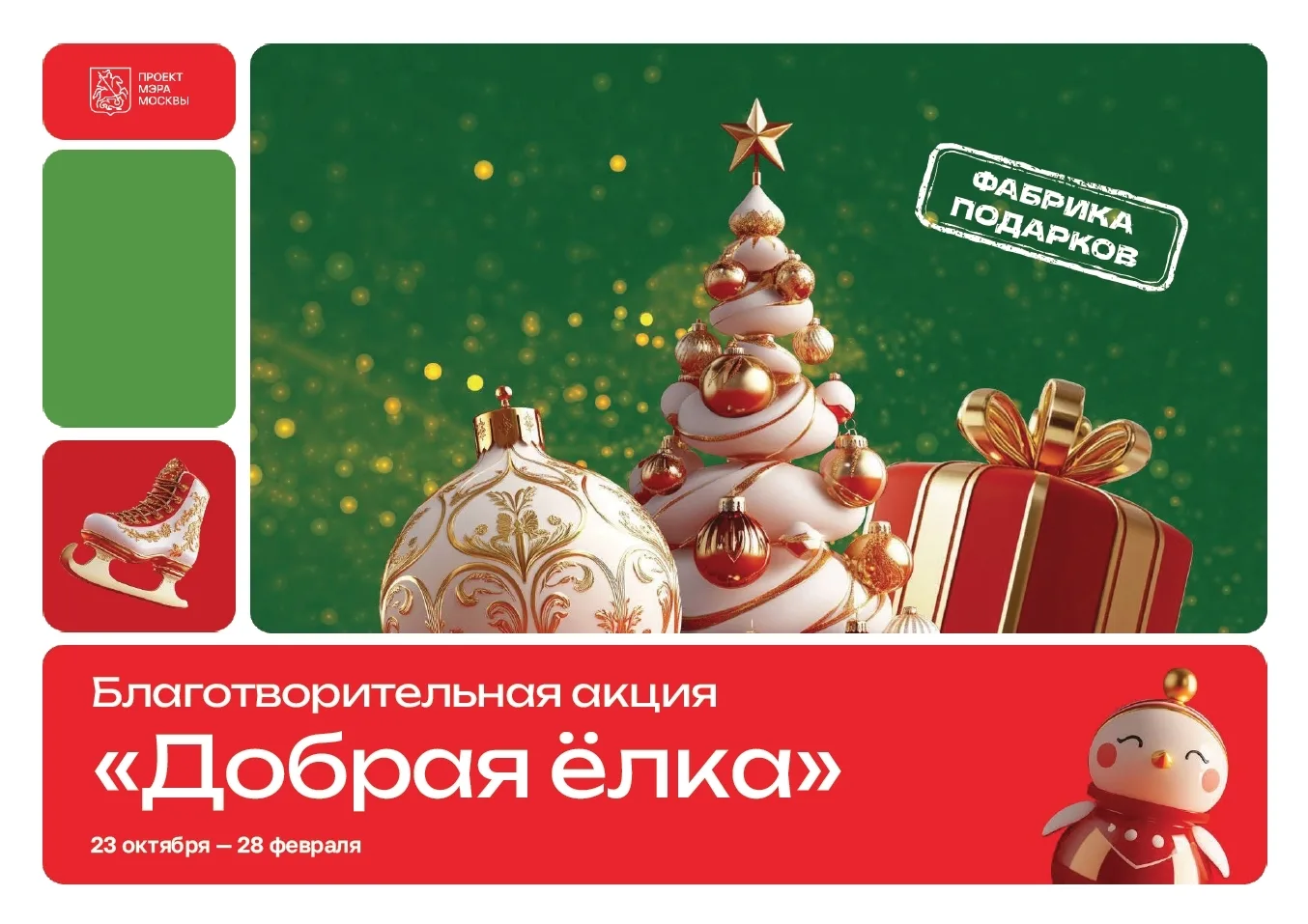С 23 октября 2025 года по 28 февраля 2026 года в Москве вновь пройдёт добрая новогодняя акция. Её цель — подарить праздник и осуществить заветные мечты детей, которые больше всех нуждаются в поддержке и внимании.