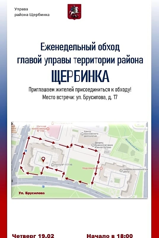 📆19 февраля исполняющий обязанности главы управы Владимир Сохацкий проведет обход территории на улице Брусилова.