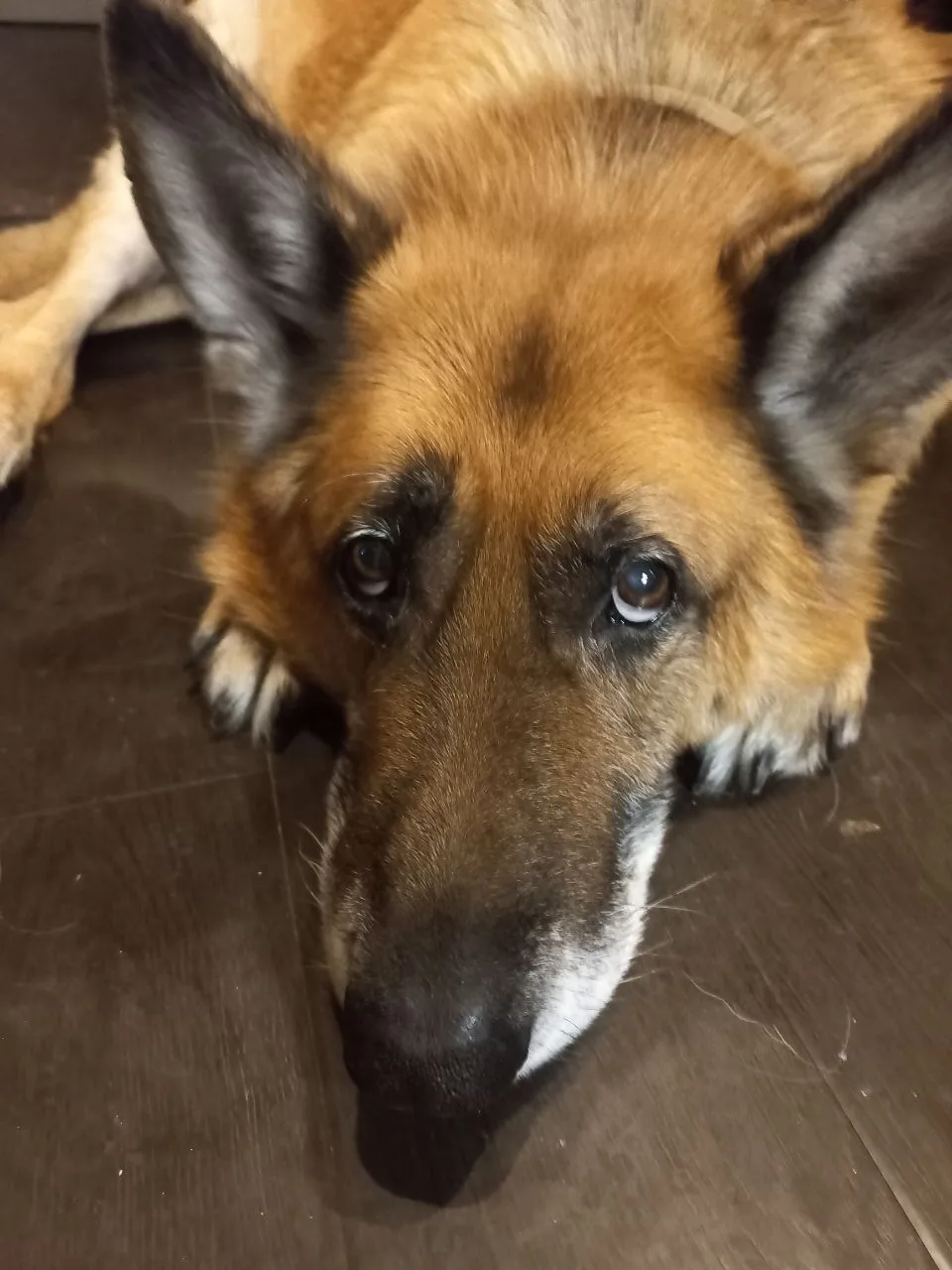 В глазах овчарки читается сострадание.