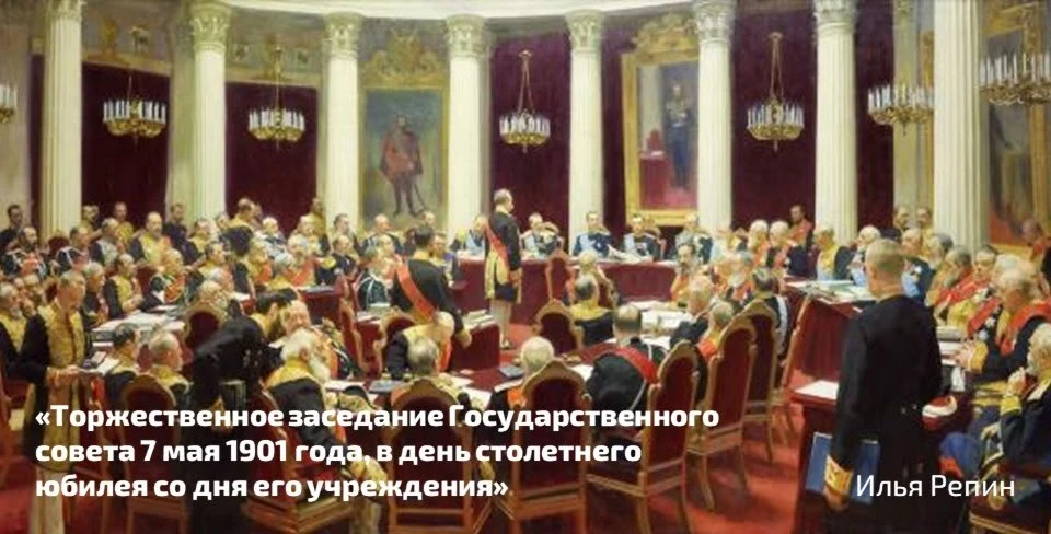 🖼 Сегодня вашему вниманию предлагается картина Ильи Репина «Торжественное заседание Государственного совета 7 мая 1901 года в день столетнего юбилея со дня его учреждения», написанная в 1903 г.