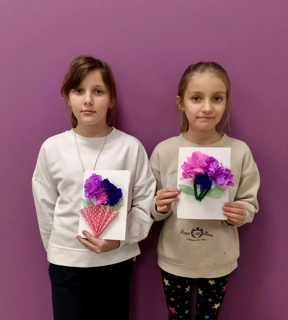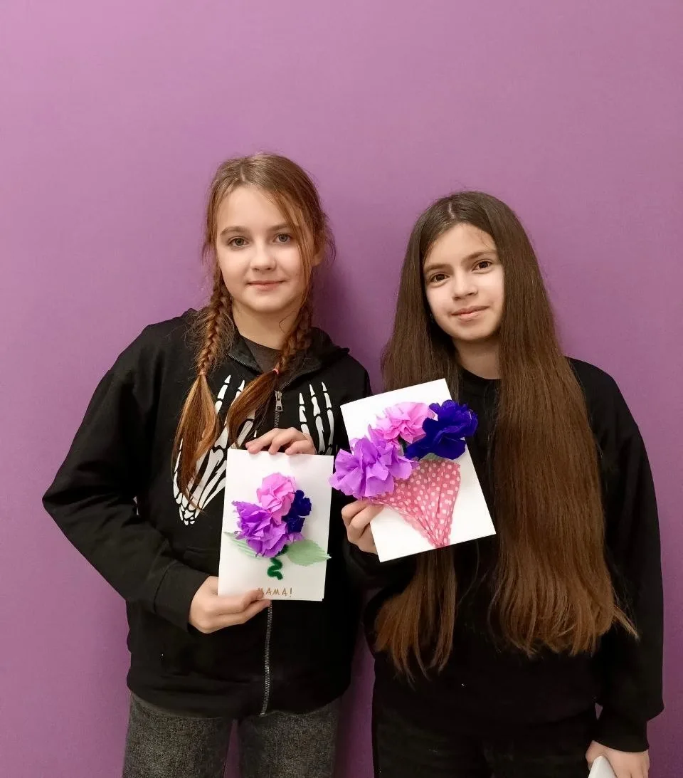 * в конце занятия каждый участник ушёл домой с уникальной открыткой — трогательным подарком для любимой мамы.