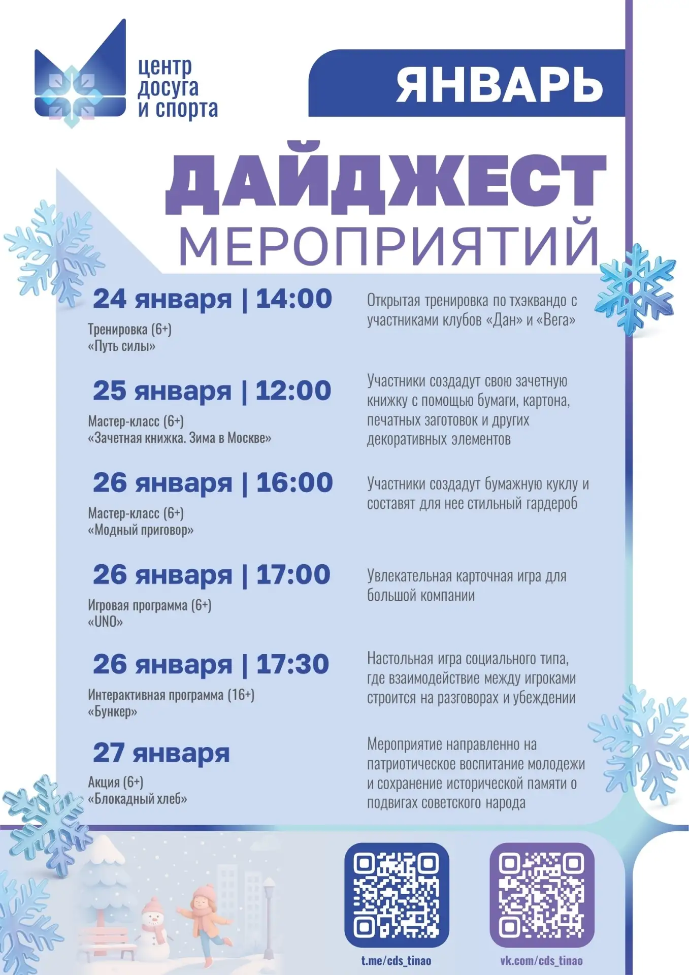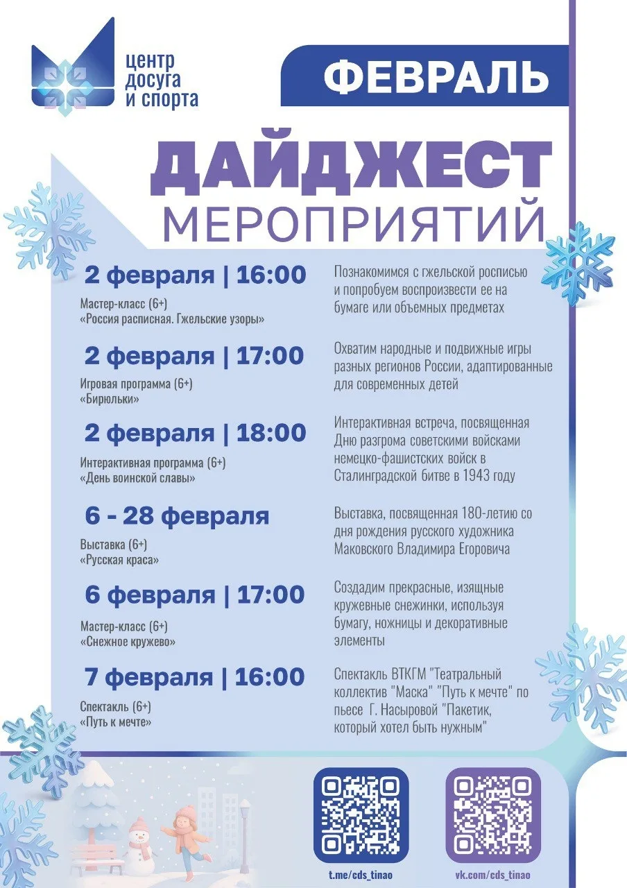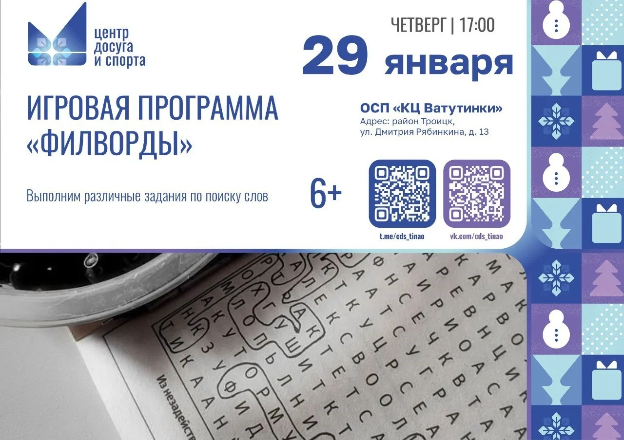 Дайджест мероприятий в культурном центре «Ватутинки» до конца января 2026 года