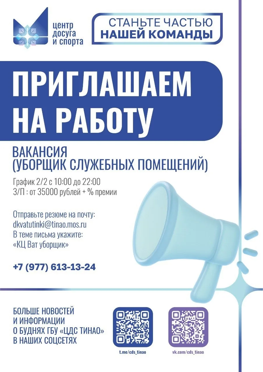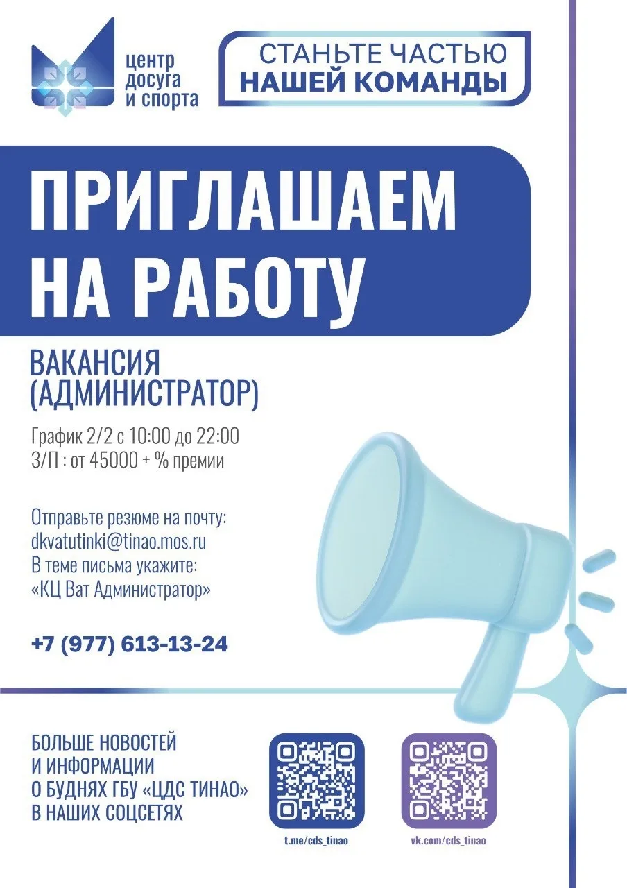 🔥Приглашаем на работу в КЦ «Ватутинки»!