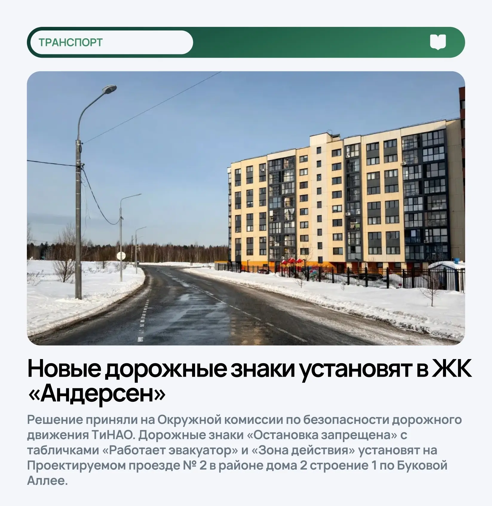 Новые дорожные знаки установят в ЖК «Андерсен»