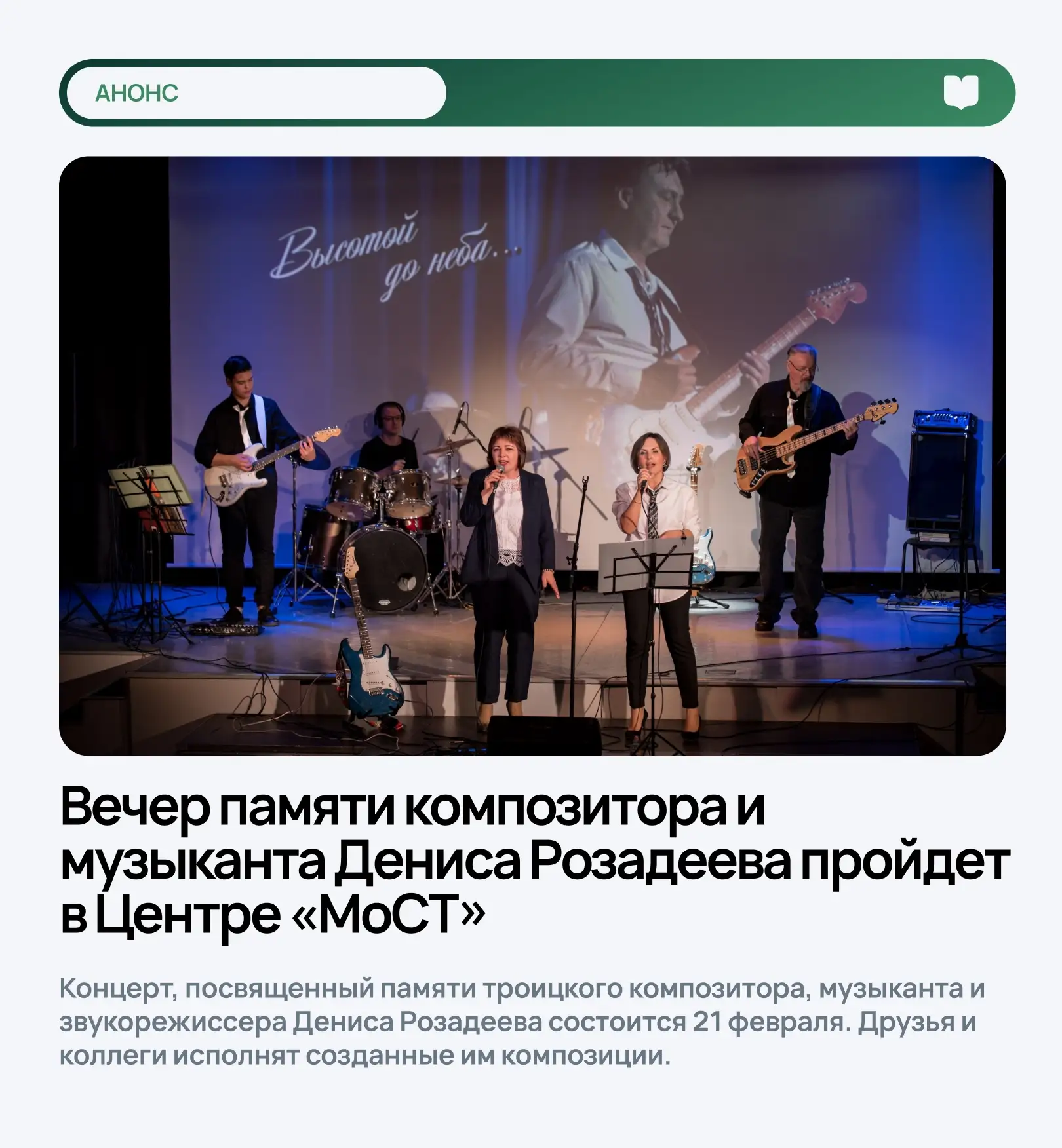 Вечер памяти композитора и музыканта Дениса Розадеева пройдет в Центре «МоСТ»