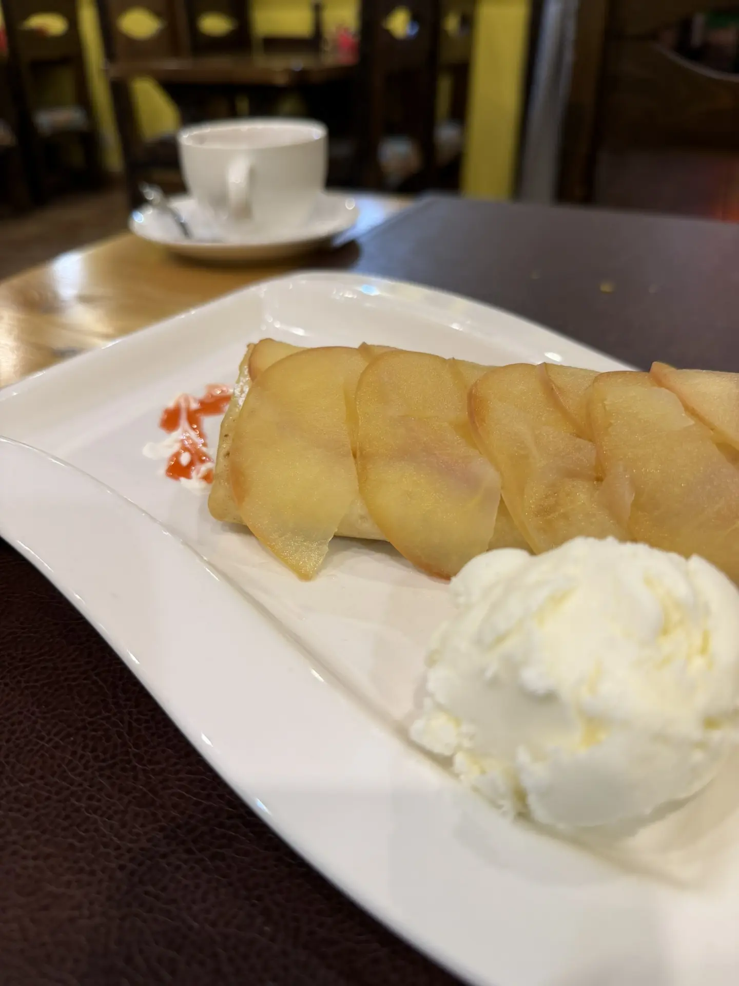 ▪️На десерт – яблочная чимичанга с шариком мороженого (430₽).