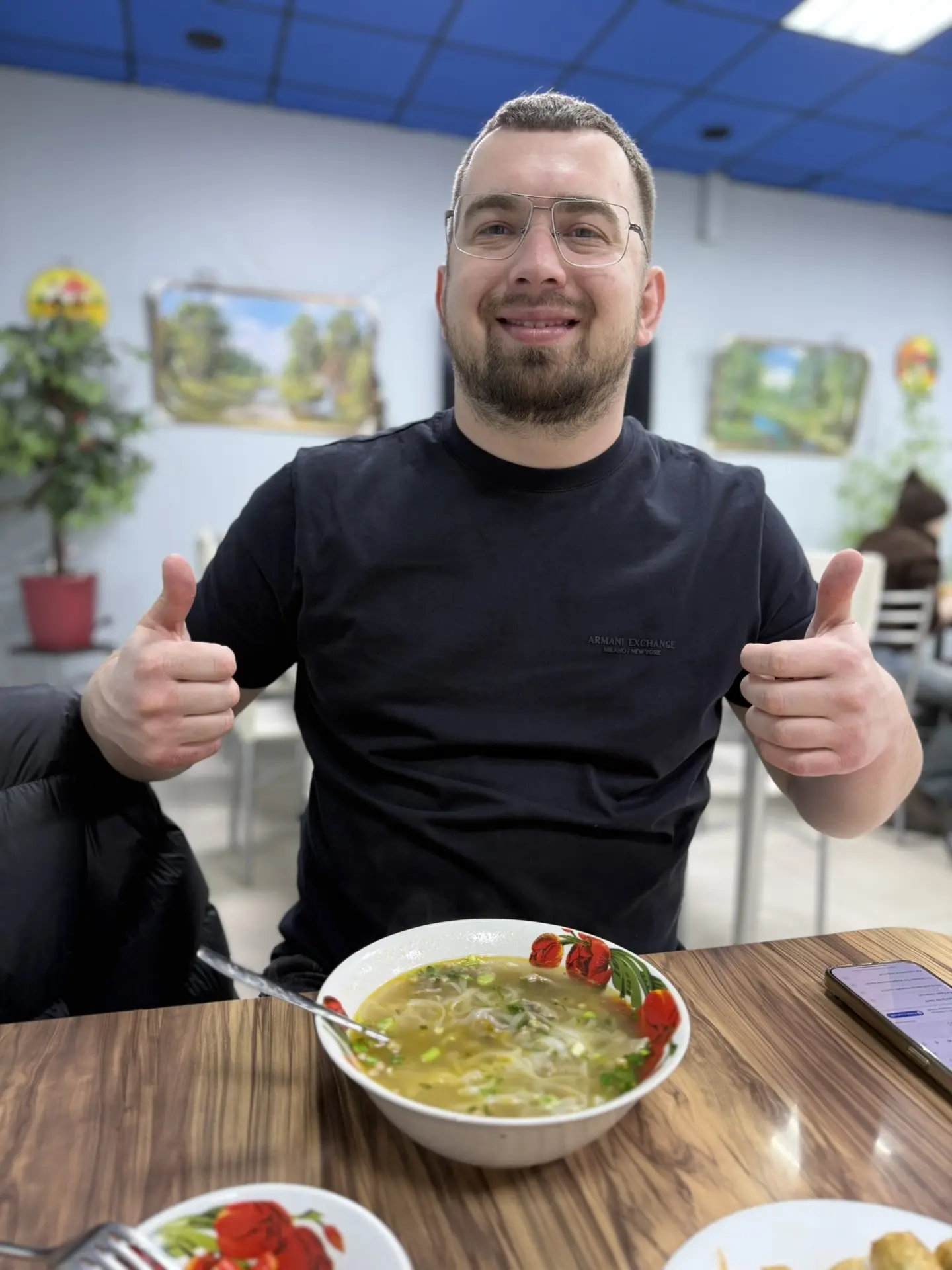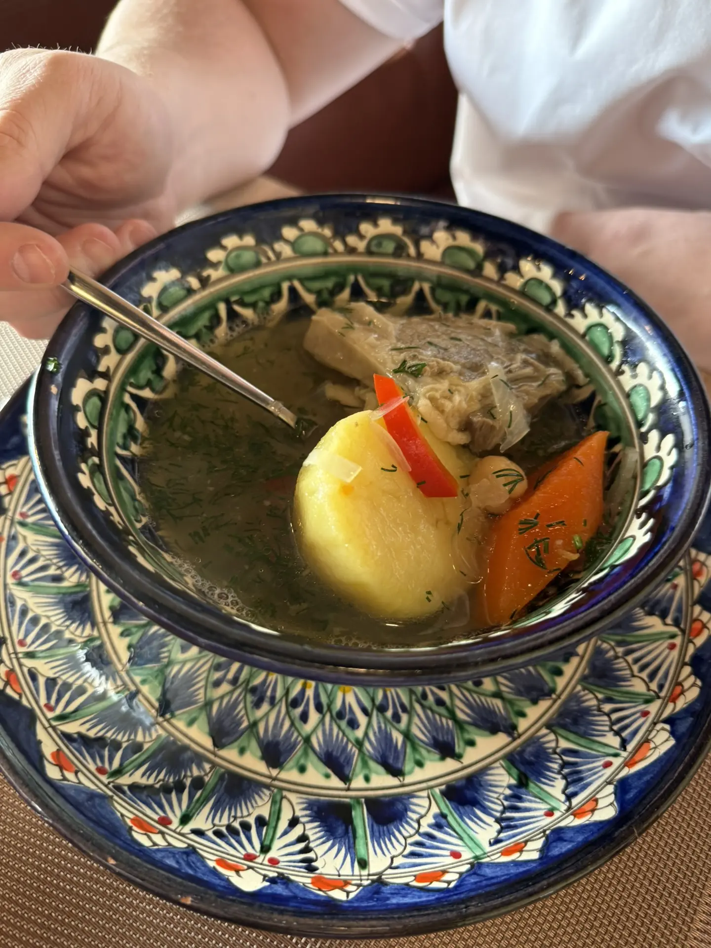 Душистый, ароматный бульон, зелень, мясо — всё как надо.