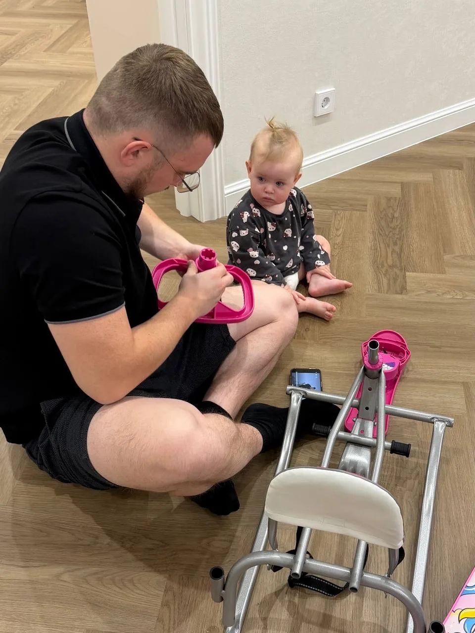 Капа просидела в снегокате ровно 5 минут😂 чтобы не нести ее на руках пришлось катить и Кристину, и Капу😬