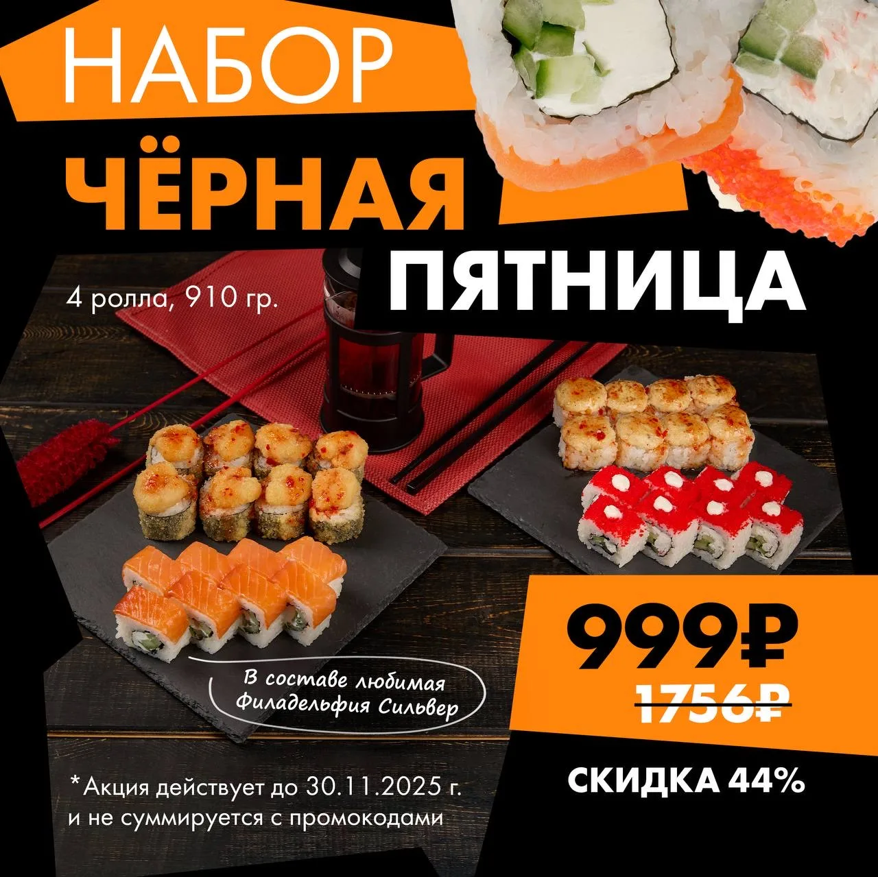 ЦЕНА всего 999 рублей😱 (экономия более 700 рублей, если брать такие же роллы, но отдельно)