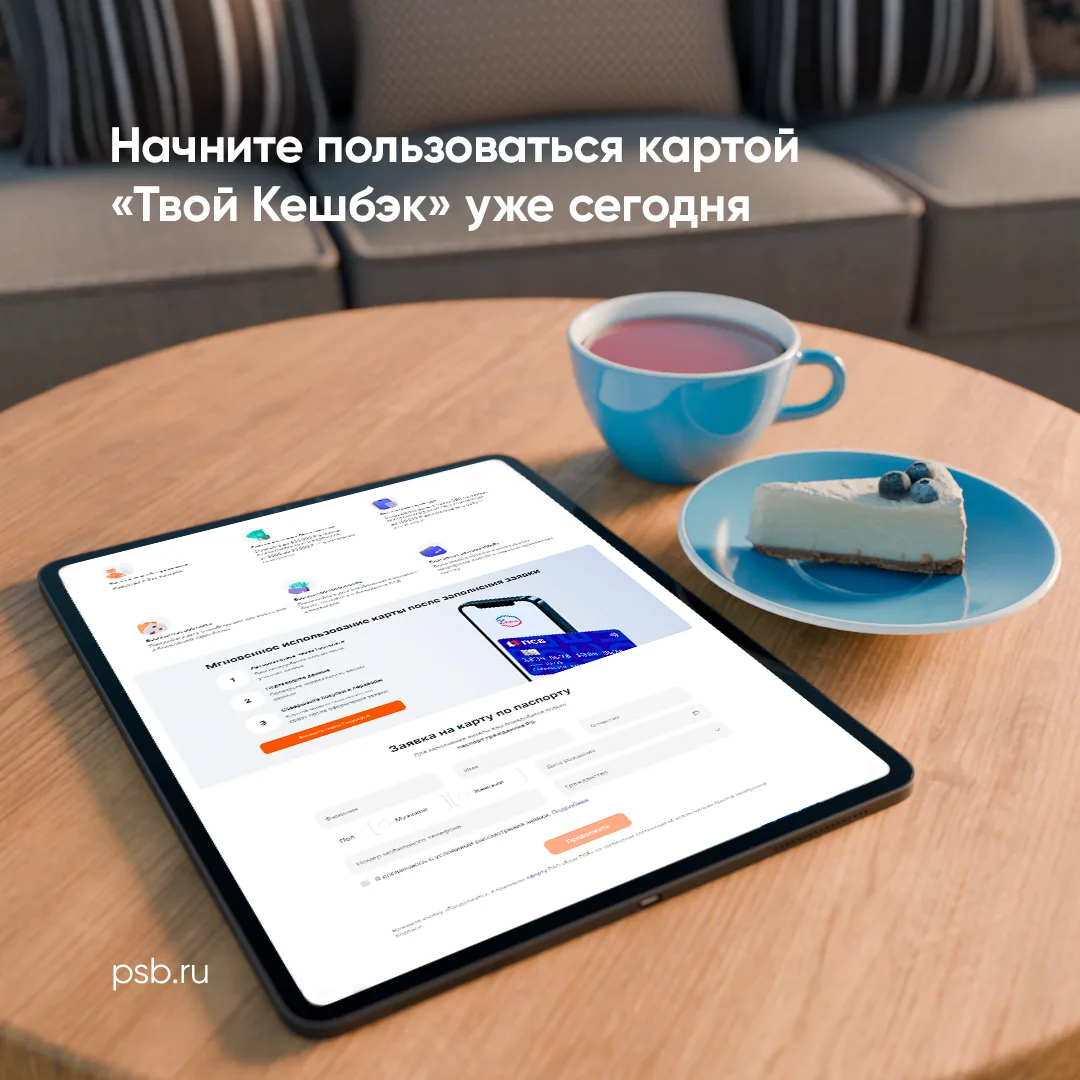 1️⃣ Зайдите на сайт ПСБ для оформления карты «Твой Кешбэк» по ссылке.