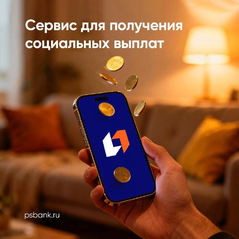 2️⃣ Через приложение или интернет-банк ПСБ: в профиле нажмите «Госуслуги» → «счёт для социальных выплат». Сервис перенаправит на страницу портала для оформления выплаты или перевода всех пособий на единый счёт.