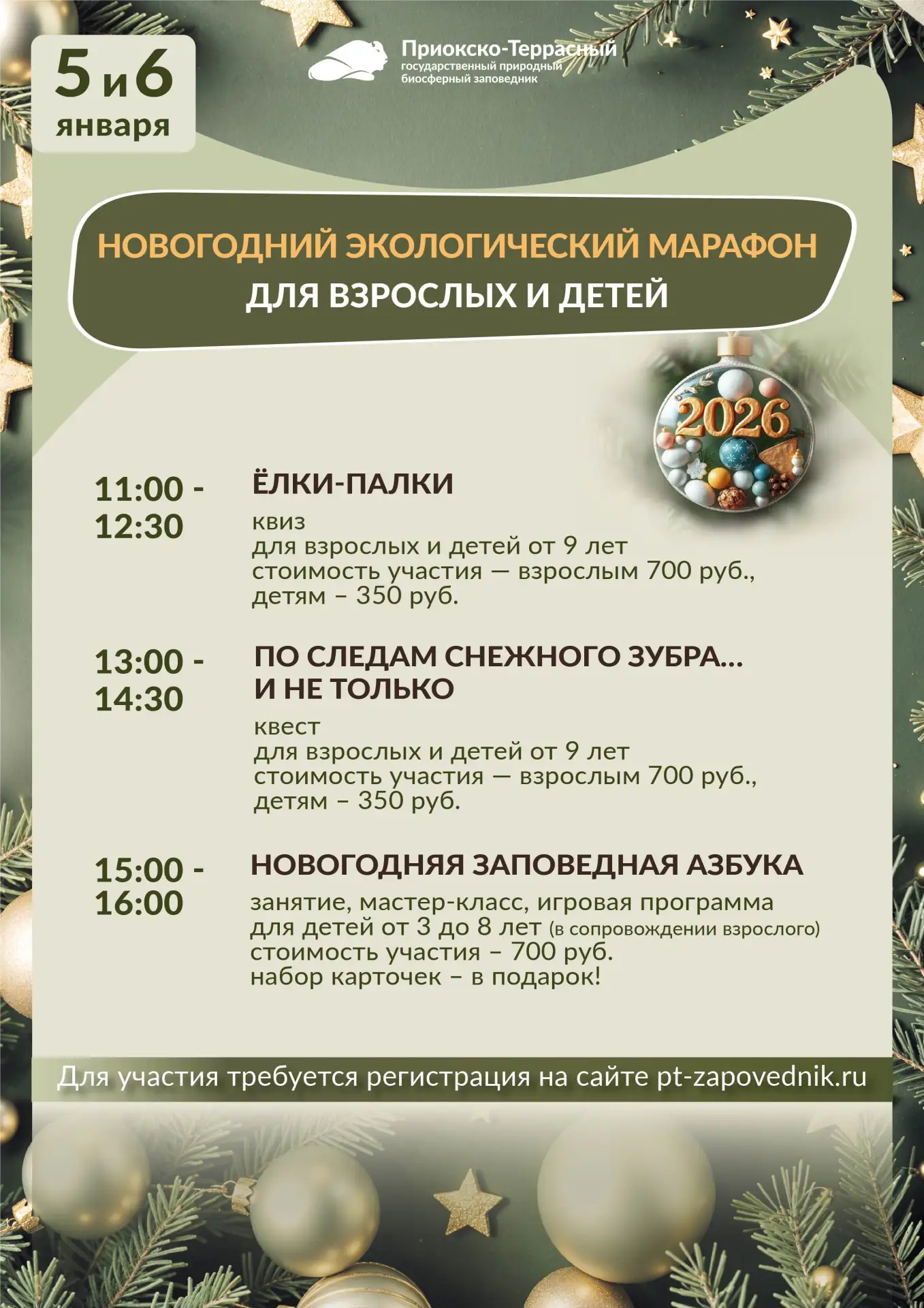✅в 15:00 игровая программа «Новогодняя заповедная азбука» для детей от 3 до 8 лет (в сопровождении взрослого), участие платное, требуется предварительная регистрация на сайте заповедника❗.