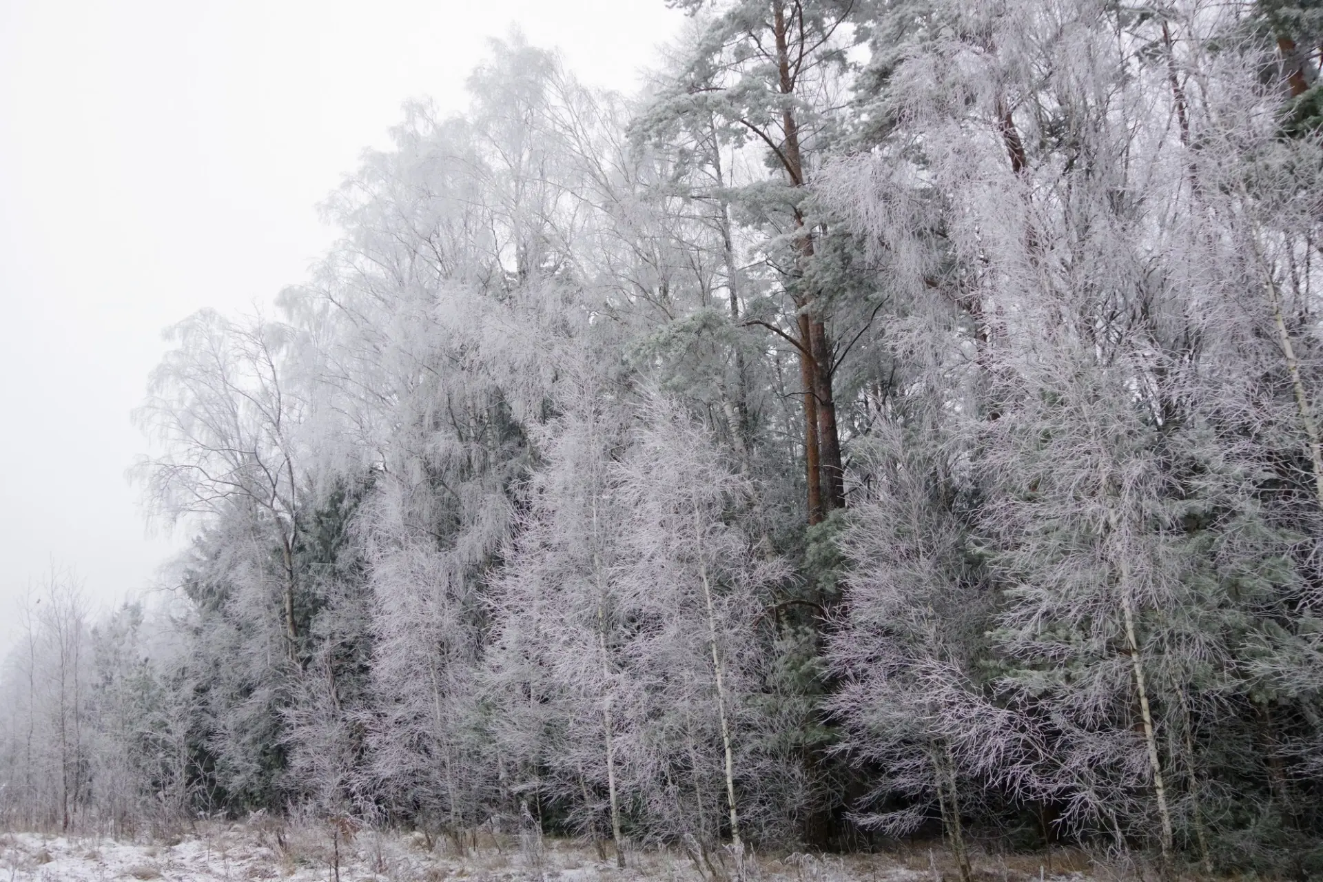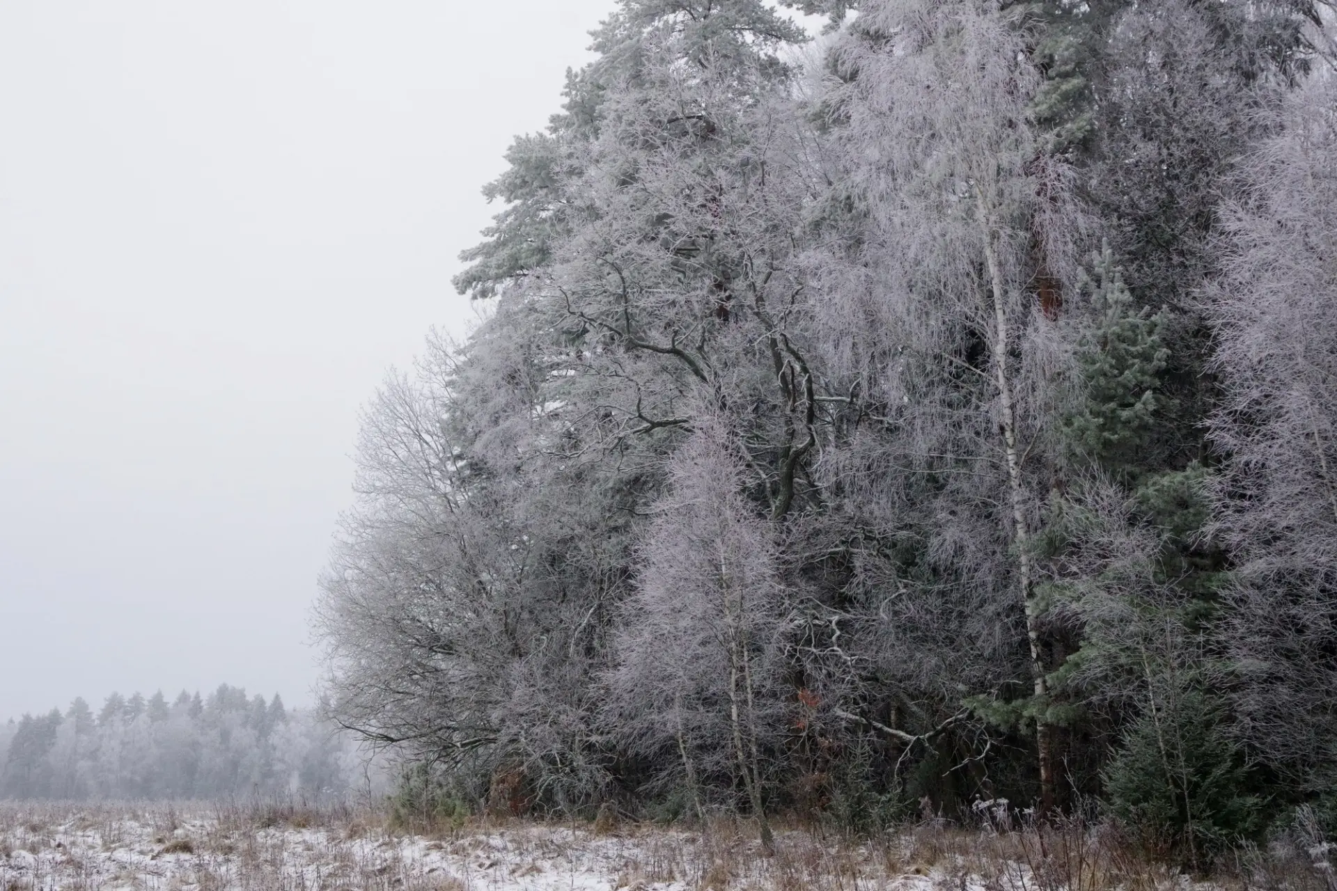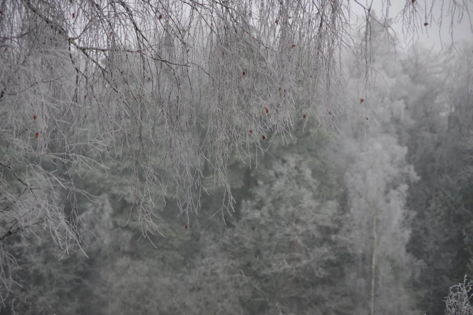 На прошлых выходных весь заповедный лес вдруг покрылся искристым одеянием из белого инея. Так бывает, когда влага из воздуха оседает на холодных поверхностях.