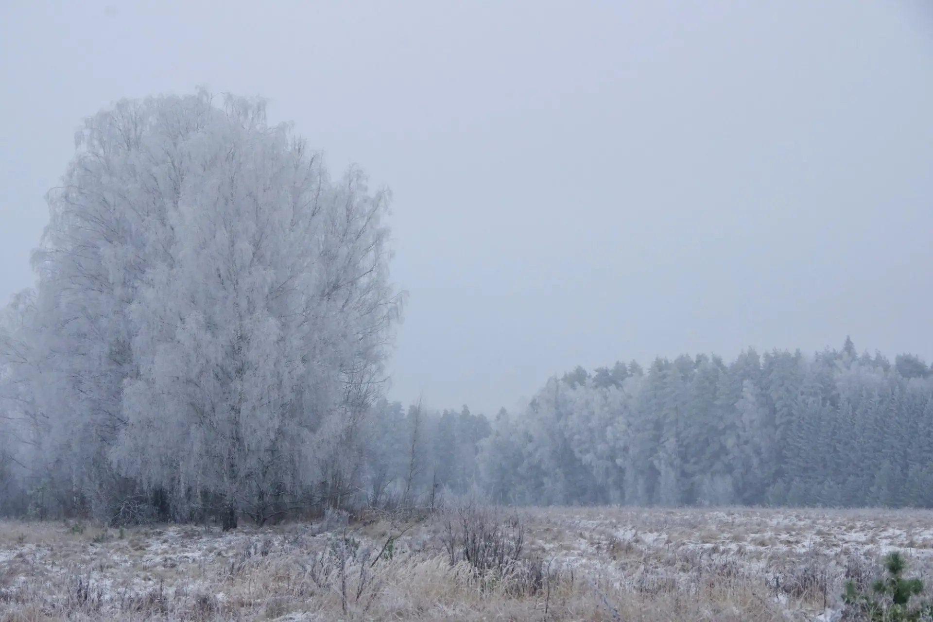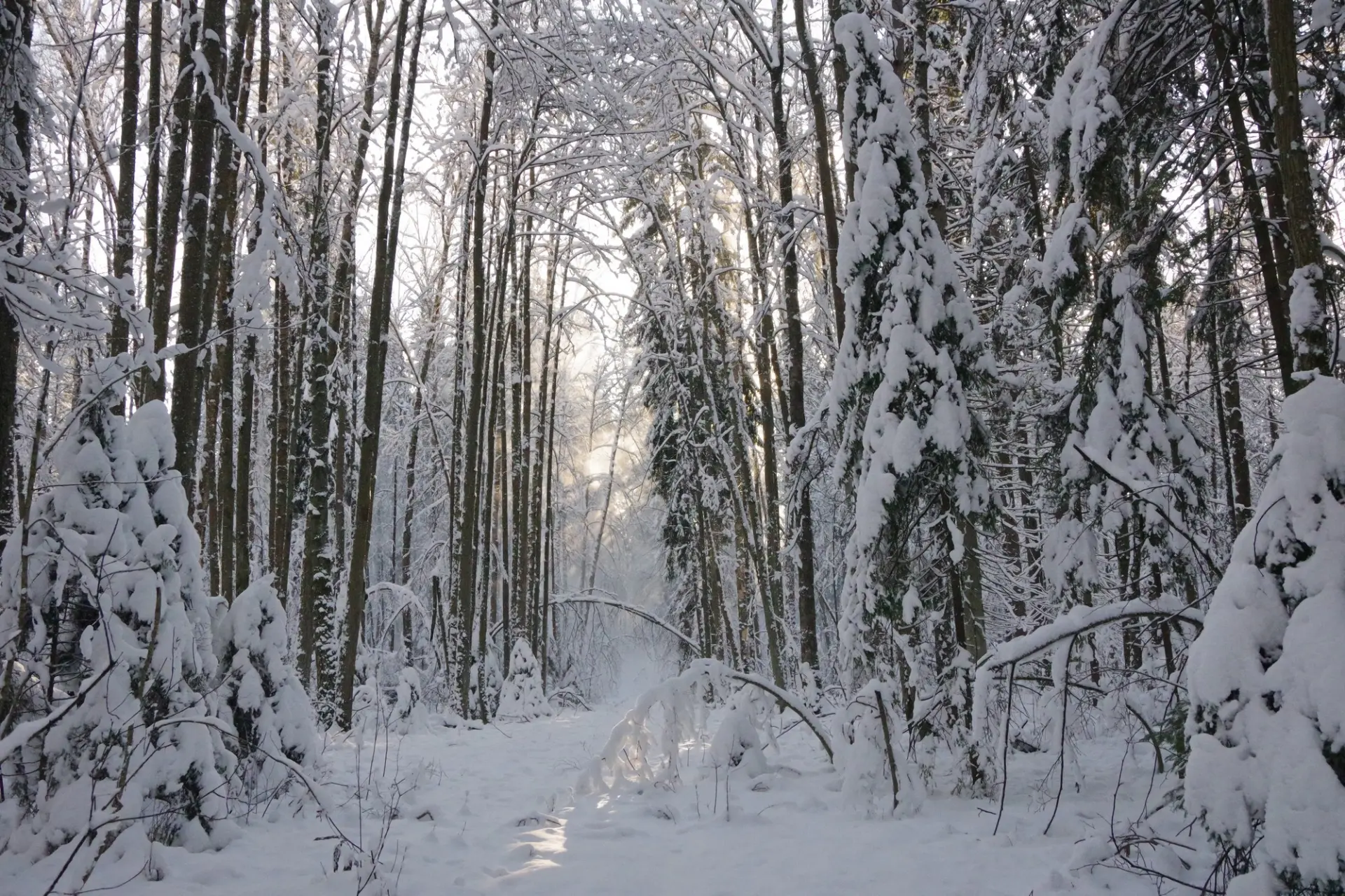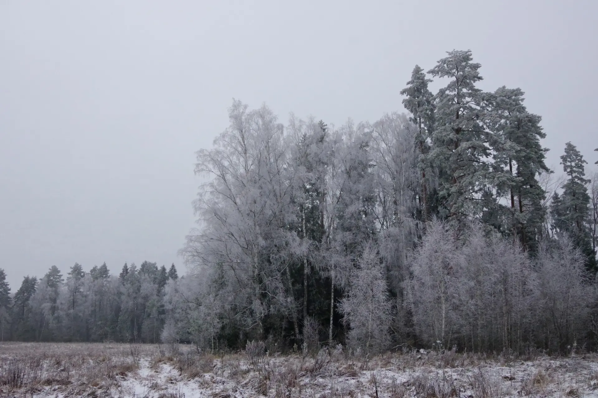 На прошлых выходных весь заповедный лес вдруг покрылся искристым одеянием из белого инея. Так бывает, когда влага из воздуха оседает на холодных поверхностях.