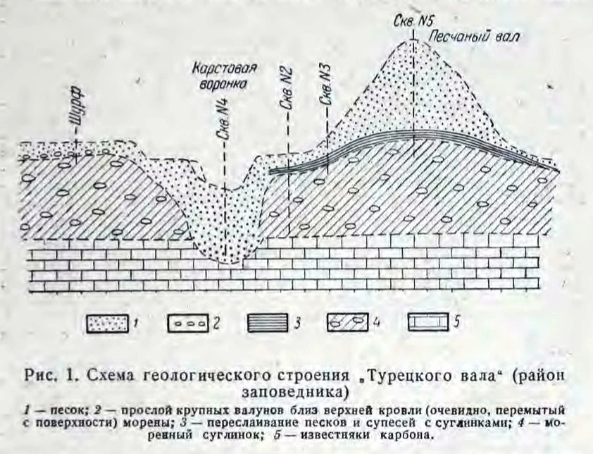 На экскурсиях мы часто рассказываем, что в заповедном лесу есть высокие и протяженные валы (до 15 м высотой и 4 км длиной), которые даже носят древние собственные названия — «Турецкий вал, «Пониковский вал, «Лужковский вал». Но никто толком не знает, как они образовались. В 1950 году первый исследователь рельефа заповедника В.Л. Лидов предложил свое объяснение — валы образовались в ходе таяния толщи ледника, который когда-то заполнял долину Оки. Мутные талые воды бежали по каналам и трещинам во льду, и накопившийся в ледниковых руслах нанос осел на землю когда ледник растаял.
