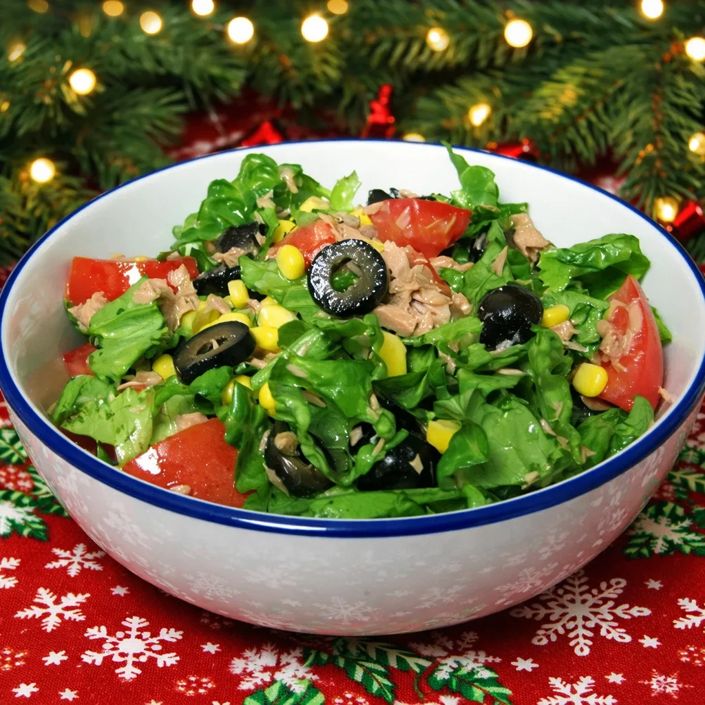 ВСЁ ПРОСТО НАРЕЗАЛ, СМЕШАЛ, СБРЫЗНУЛ ОЛИВКОВЫМ МАСЛОМ — НЕЖНЫЙ ТУНЕЦ, СОЧНЫЕ ПОМИДОРЫ, ХРУСТЯЩИЕ ЛИСТЬЯ САЛАТА, СЛАДКАЯ КУКУРУЗА И ПИКАНТНЫЕ ОЛИВКИ СОБИРАЮТСЯ В ЛЁГКИЙ, СВЕЖИЙ И НАСЫЩЕННЫЙ ВКУС, БЕЗ ТЯЖЕСТИ, НО С СЫТНОСТЬЮ!