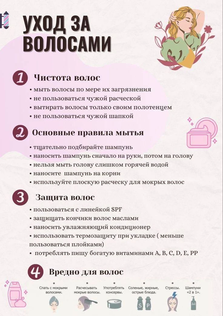 Отличная памятка 📝 об уходе за вашими шикарными волосами❤️