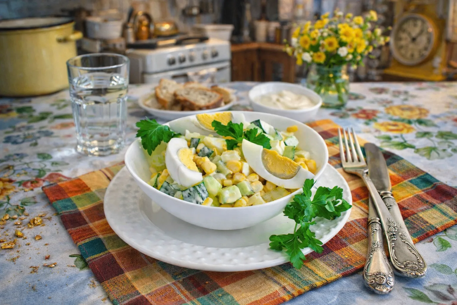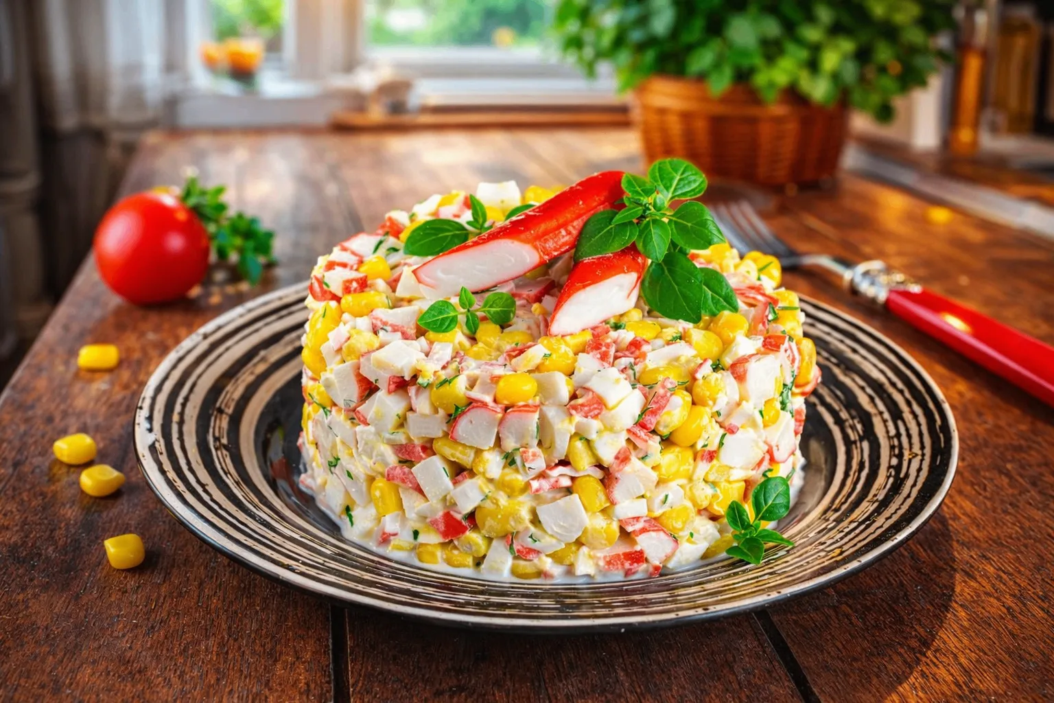 Салат с крабовыми палочками, кукурузой и яйцом