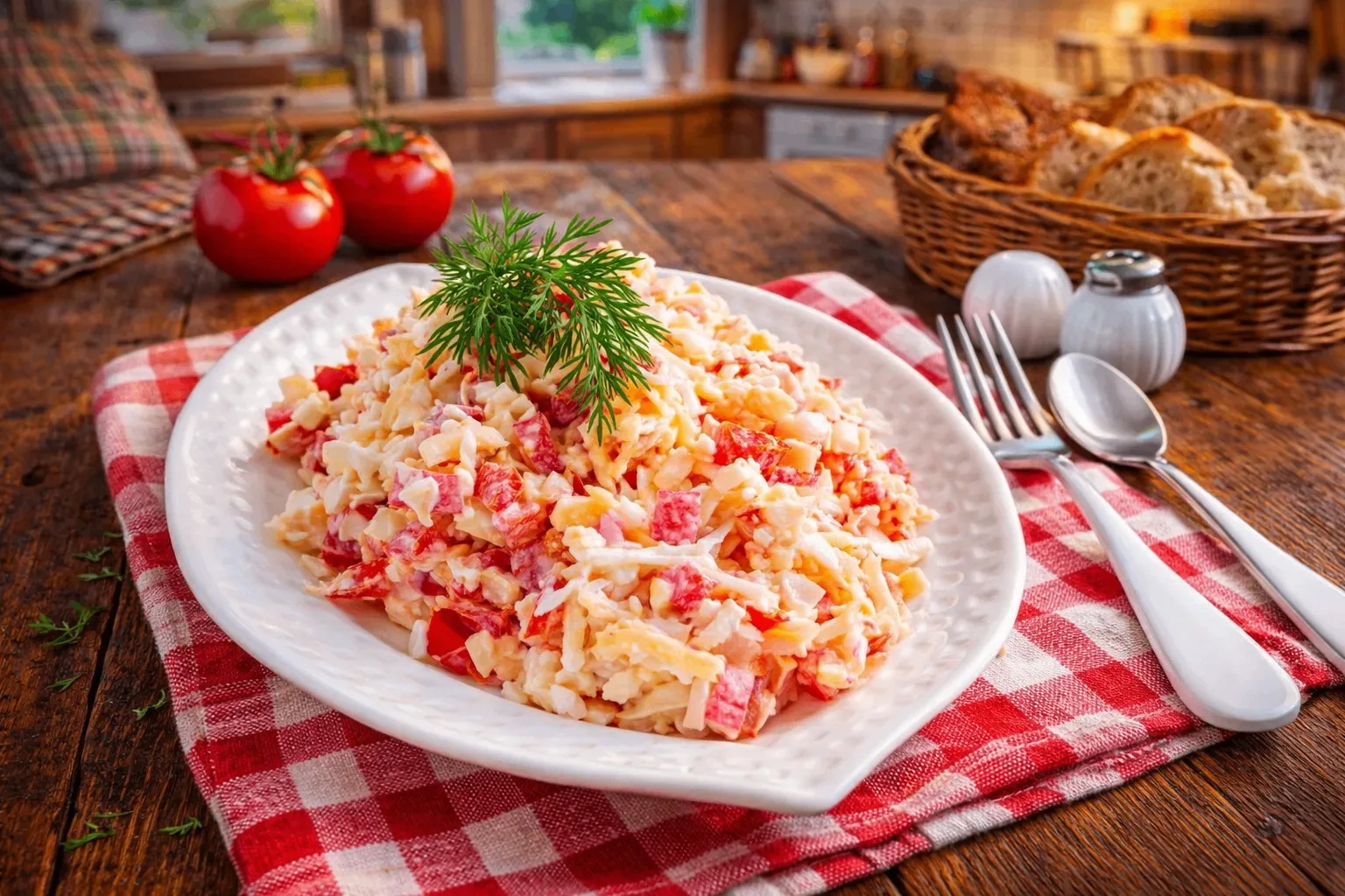 Классический салат из крабовых палочек🥗Простой, лёгкий и всегда уместный на столе!