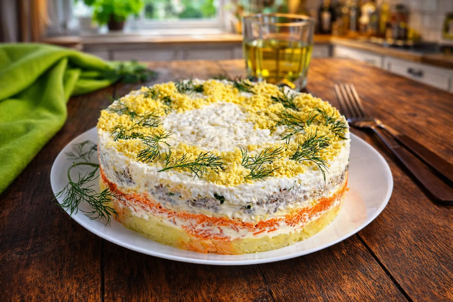 Салат «Черепаший вальс» 🐢Этот многослойный салат выглядит эффектно и получается очень вкусным. Да, приготовление займёт немного времени, но результат того стоит — блюдо станет настоящим украшением стола!