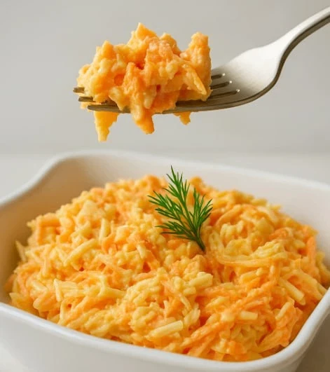 Нежный салат с морковью, сыром и яйцом