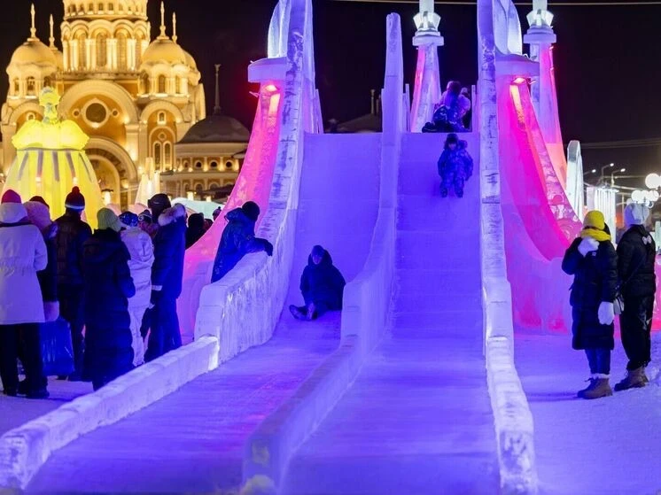 Горожане катались с ледяных горок и бродили по снежным лабиринтам. Пока дети наслаждались катанием, родители активно передвигались между горками, присоединяясь к общему спортивному настроению.