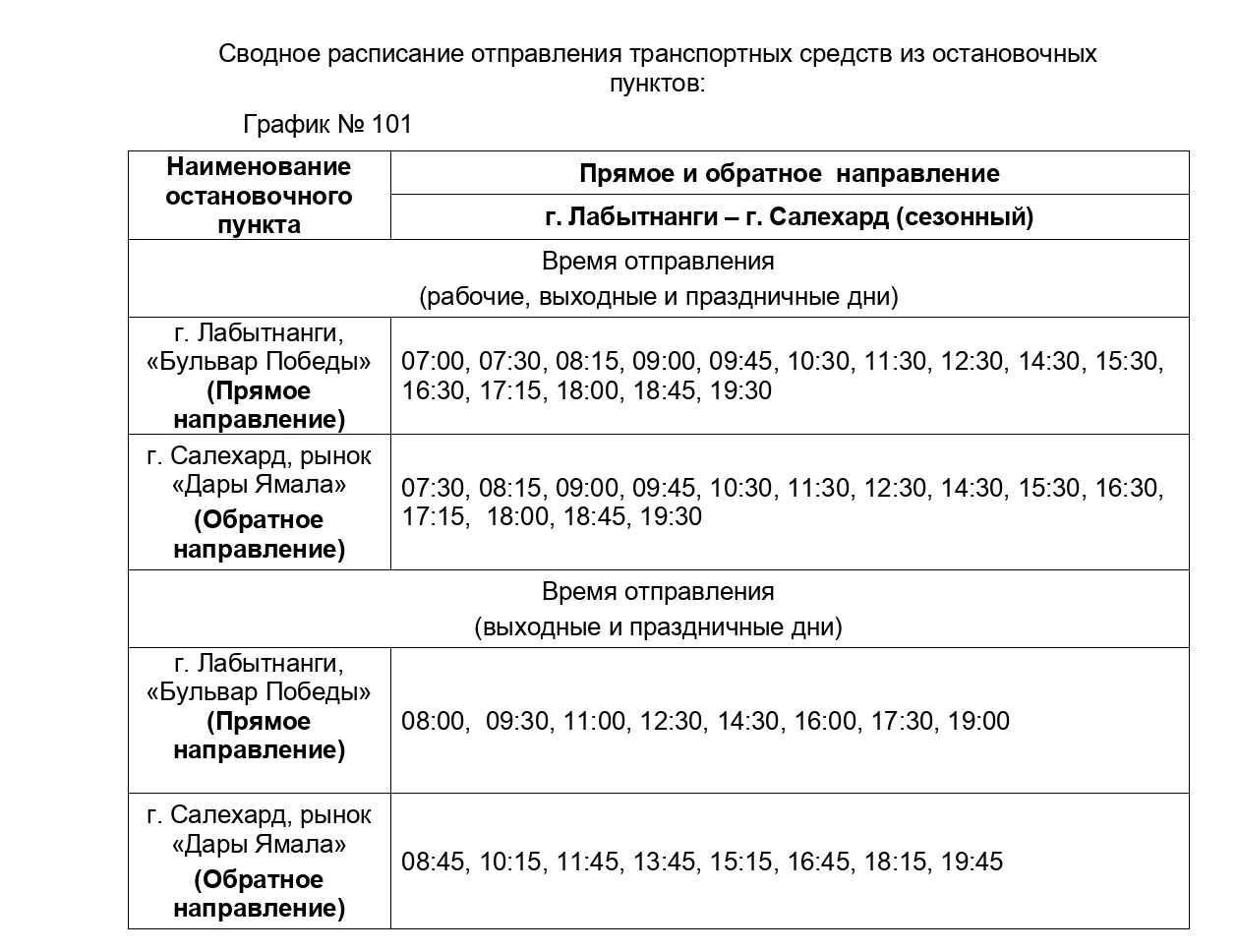 В выходные и праздничные дни автобусы между Салехардом и Лабытнанги будут отправляться по новому графику.