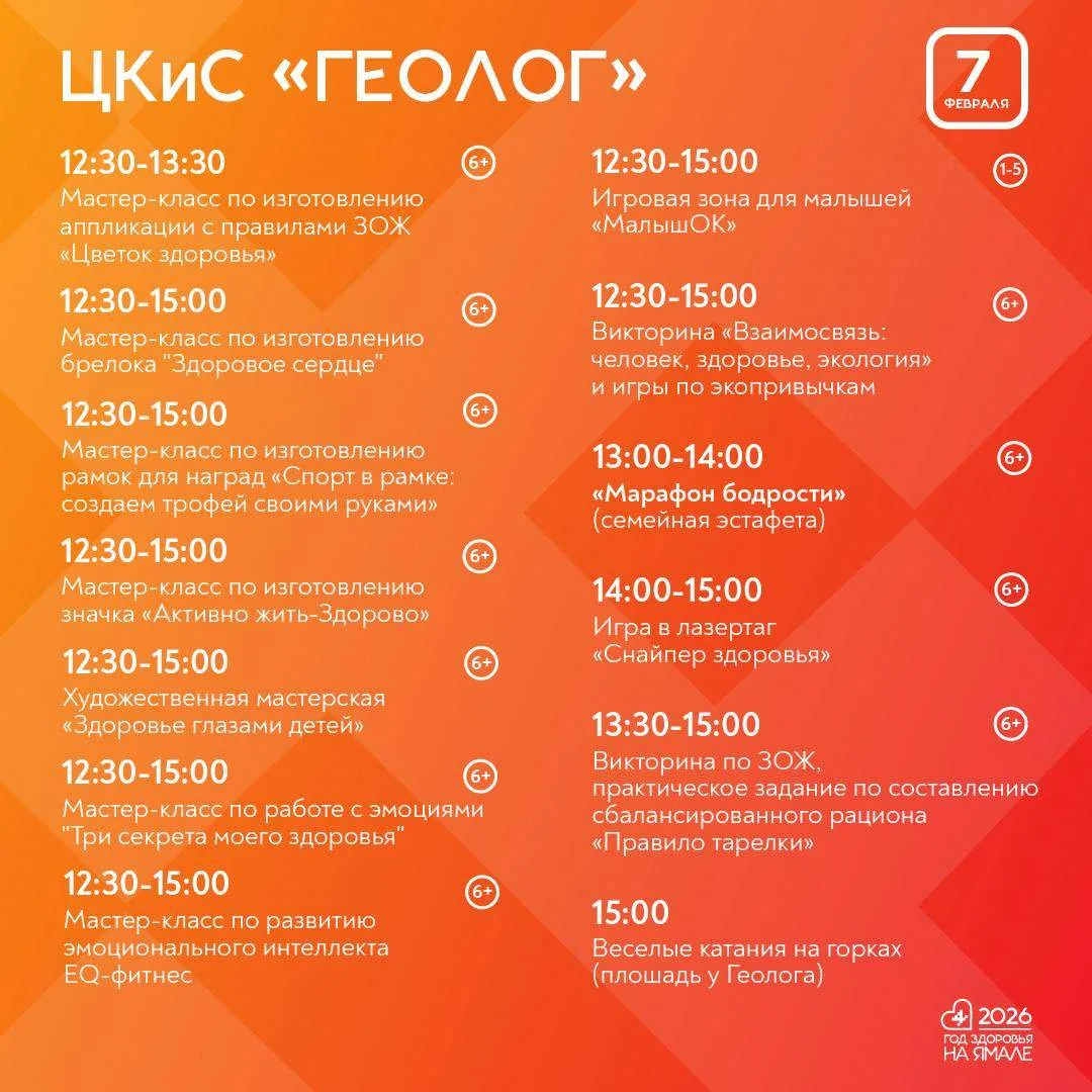 🥳 Торжественное открытие Года здоровья в Салехарде, перенесённое из-за сильных морозов, состоится 7 февраля.