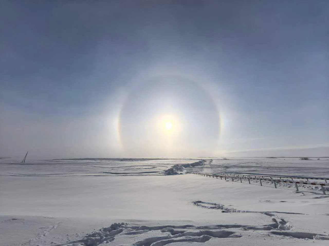 🌷☀️ Солнечное гало озарило небо над Салехардом в первый день весны.