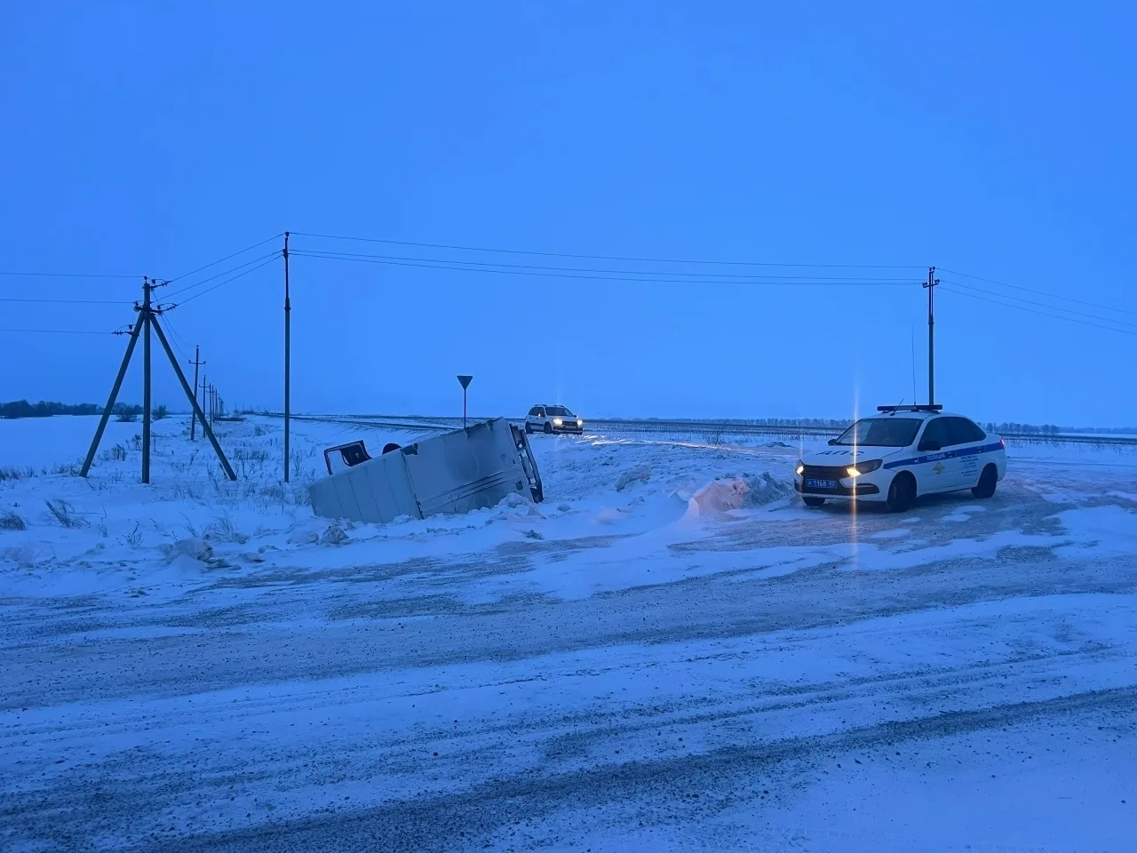 ‼️Утром водитель грузовика "Foton" направлялся из Сибая в Кумертау по навигатору. Навигатор почему-то не проложил путь от Исянгулово по трассе Ира – Магнитогорск, а повёл его в сторону Новопетровска. Возможно, он свернул на дорогу Исянгулово – Мраково, но так или иначе, водитель потерял управление на повороте к деревне Башкинская Ургинка, и грузовик опрокинулся на обочину.