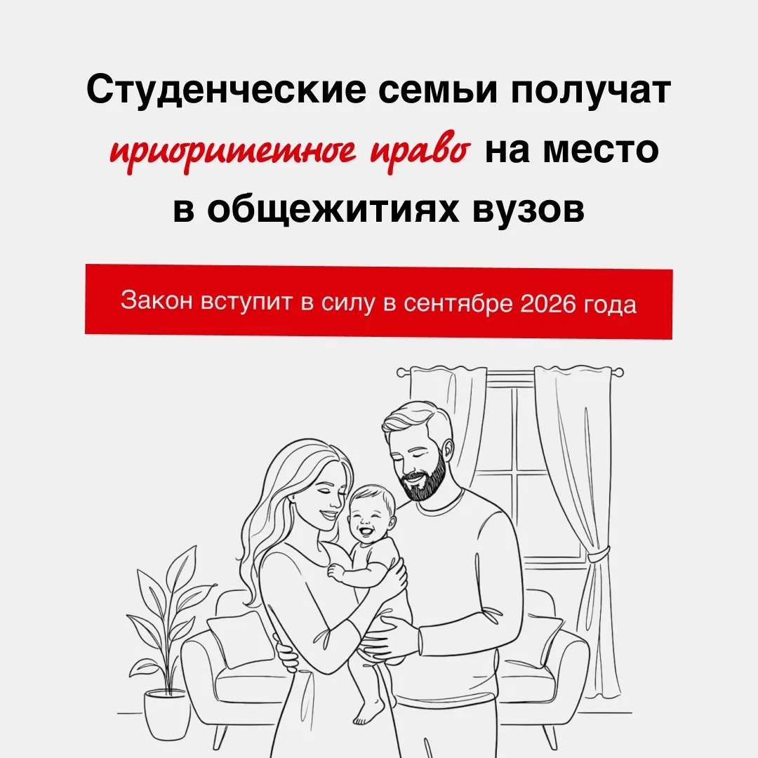 Для студенческих и молодых семей закрепят приоритетное право на получение жилья в общежитиях вузов – Госдума приняла об этом законопроект, который вступит в силу с сентября 2026 года.