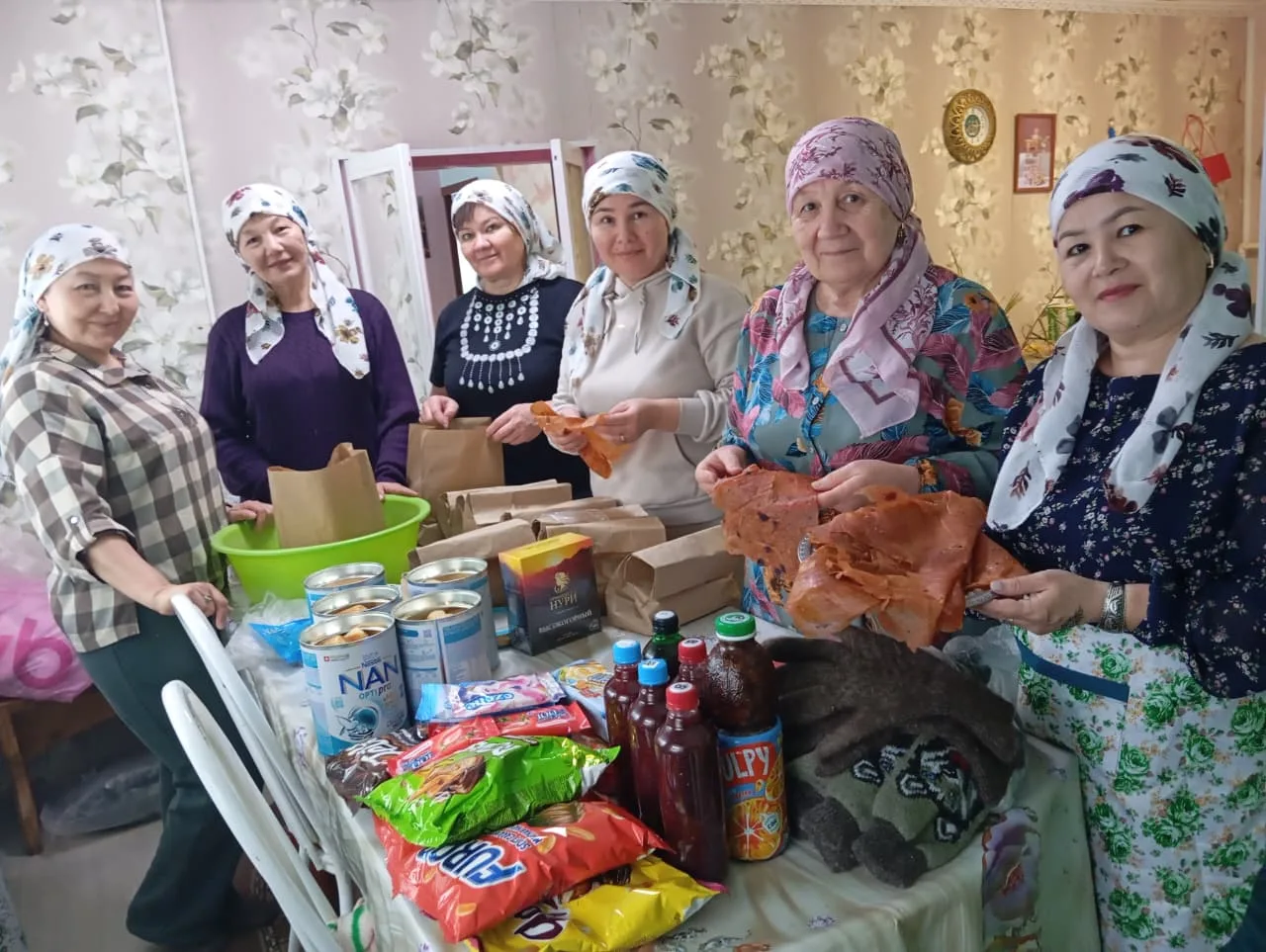 🙏Прекрасные женщины из Суренского СП, Агинайзар, приготовили для зианчуринских бойцов посылки. Здесь и пастила, и вязаные с любовью носки, и вкусные сухарики, и чай, сухой душ и много-много всего полезного!