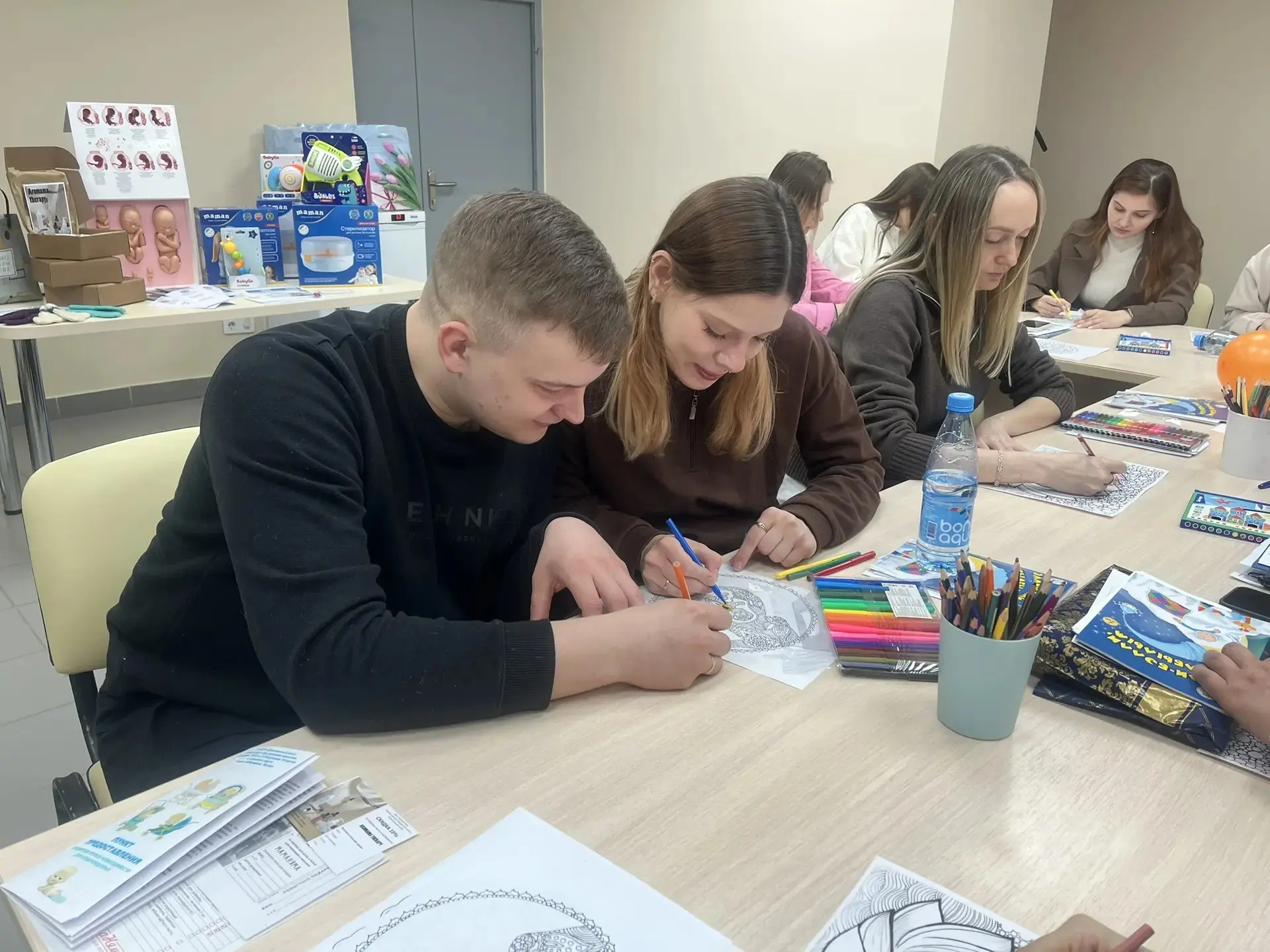 В КДМЦ состоялся праздник для будущих мам — участниц «Школы подготовки к родам» женской консультации перинатального центра. Организаторы — специалист по социальной работе Наталья Малинина и медицинский психолог Виктория Жилкина — подготовили тёплую программу: лекции, творческий мастер-класс «Счастливое материнство» в технике мандалотерапии, викторины и розыгрыш ценных подарков. Гости узнали о порядке оформления документов для новорождённого, немедикаментозных способах облегчения боли и получили в подарок тёплые носочки от клуба «Люблю вяжу жизнь». Впервые на праздник пришёл и будущий папа.