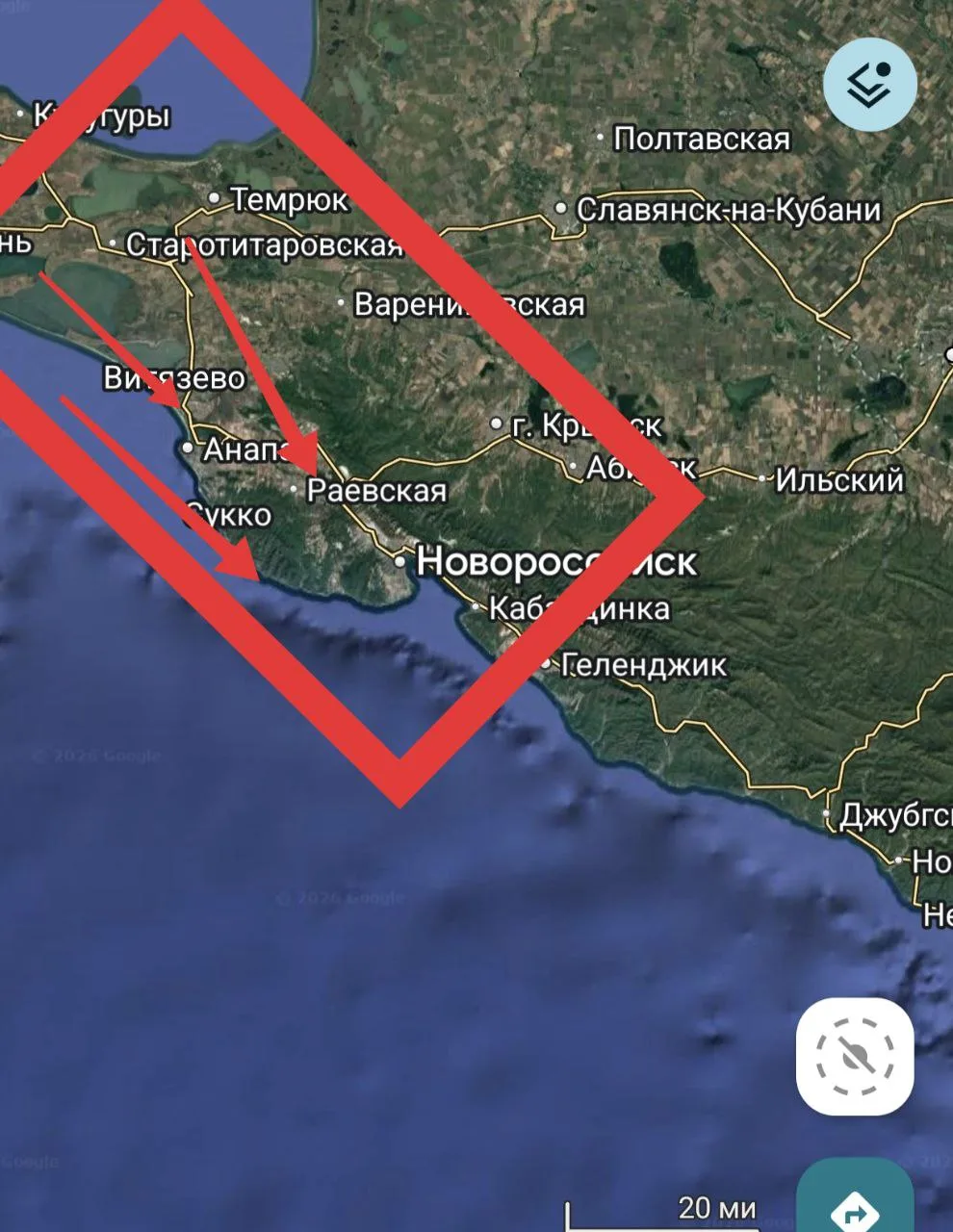 Славянск-на-Кубани - опасность по БПЛА от Новороссийска через Крымский район.