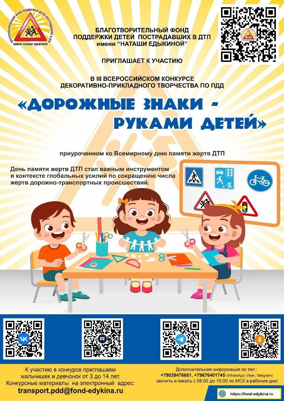 В этом им помогают различные ресурсы. Благотворительный фонд поддержки детей, пострадавших в ДТП, имени «Наташи Едыкиной», предлагает ребятам повторить и закрепить правила дорожного движения с помощью участия во всероссийских творческих конкурсах: «Новый дорожный знак глазами детей», «Дорожные знаки – руками детей», «Юные россияне zа мир на дорогах!».