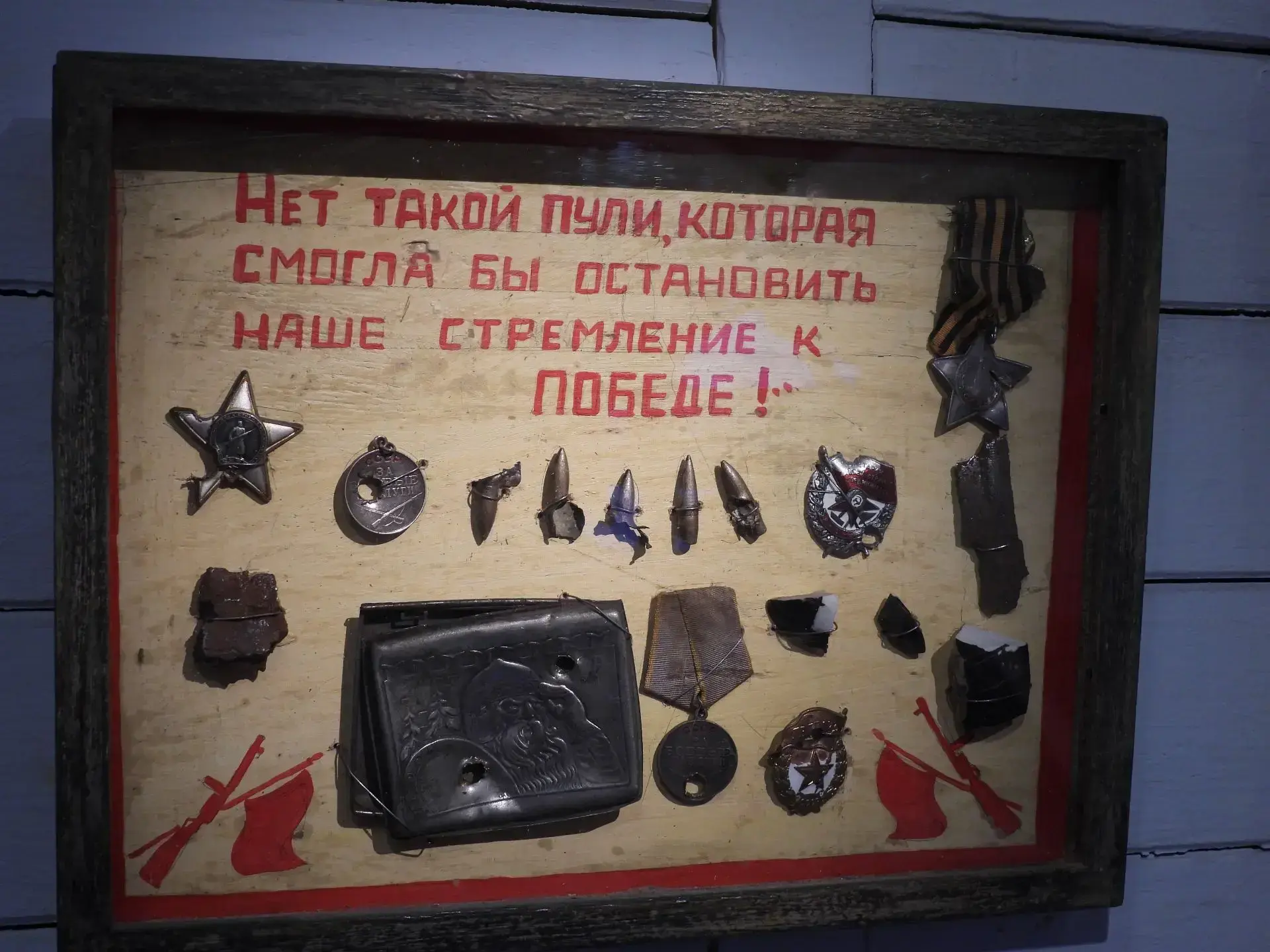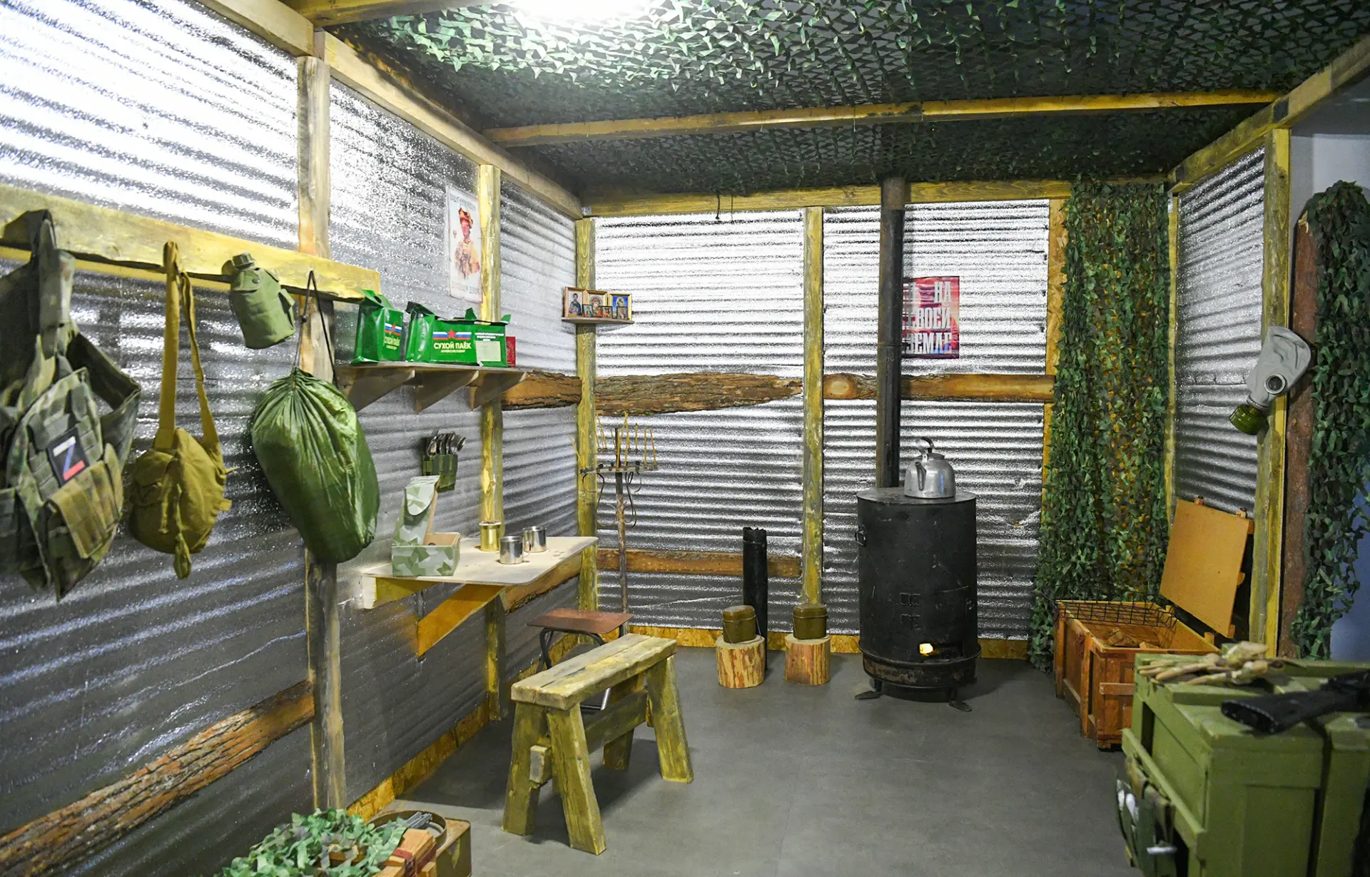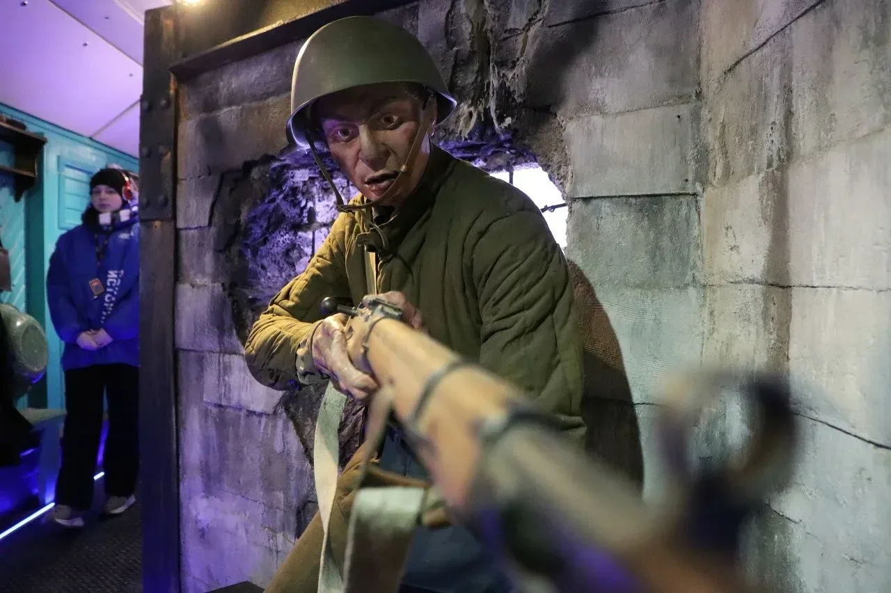 Гости осмотрели экспозицию, где воссозданы блокпост, полевой госпиталь, солдатский «бивак» и подъезд жилого дома, у которого собирались мирные жители во время боевых действий. Выставка погружает в атмосферу настоящего подвига через визуальные истории, документальные свидетельства и реальные предметы из зоны спецоперации – личные вещи воинов и артефакты с передовой.