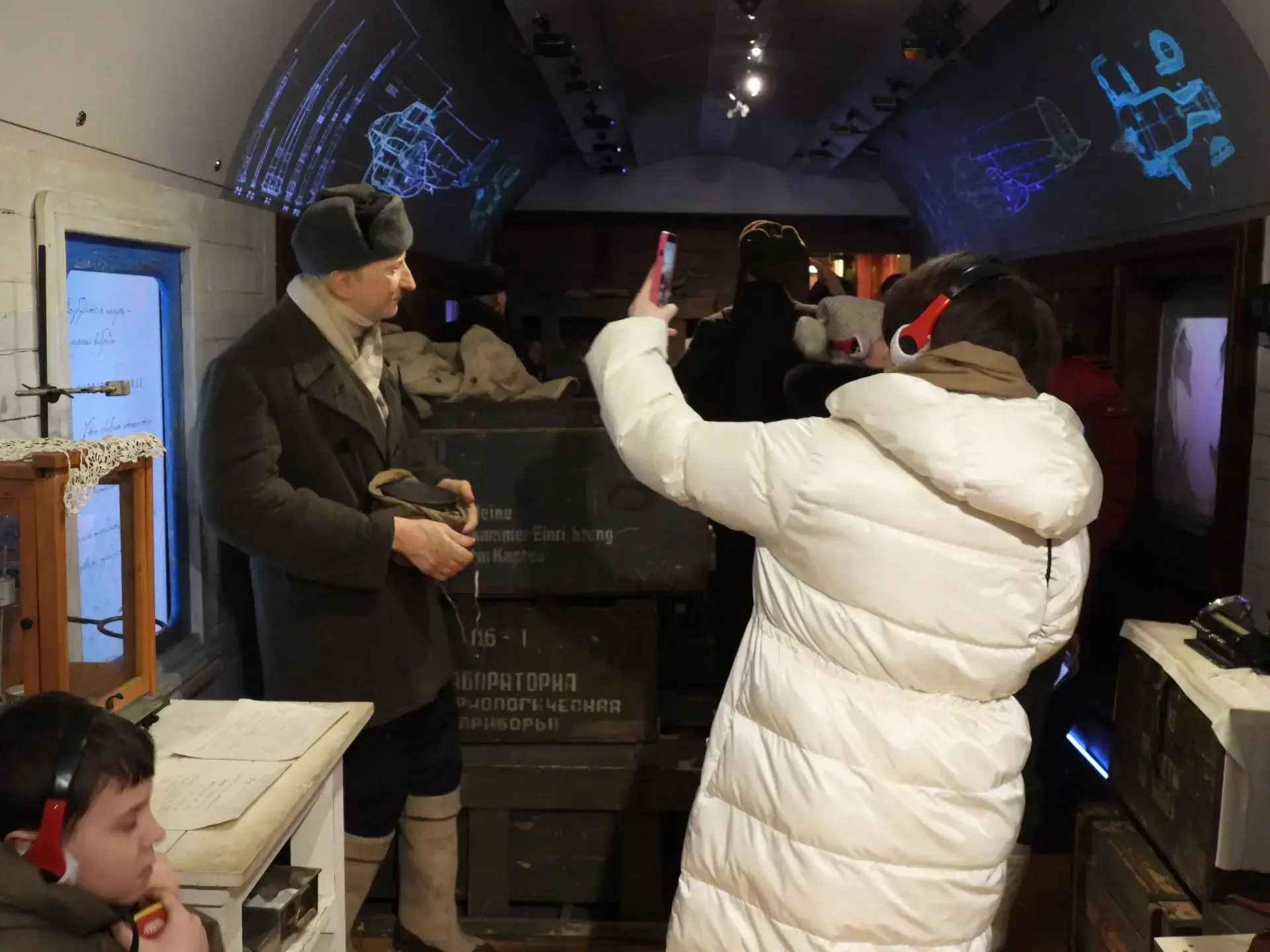 На сегодняшний день ни в одном музее мира нет такого количества многофигурных композиций в скульптуре, как в «Поезде Победы». 50 видеопроекторов, 18 видеостен, 12 тач-столов благодаря световым и звуковым эффектам воссоздают воздушные бои и танковые атаки, картины походной солдатской жизни и воспоминания довоенного времени.