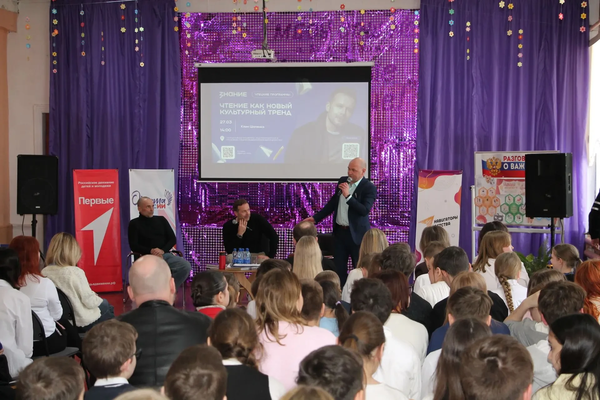 Отдельно на встрече обсудили, как чтение становится новым культурным трендом. Клим Шипенко провел мастер-класс по выразительному чтению, на котором школьники читали отрывки из выбранных произведений.