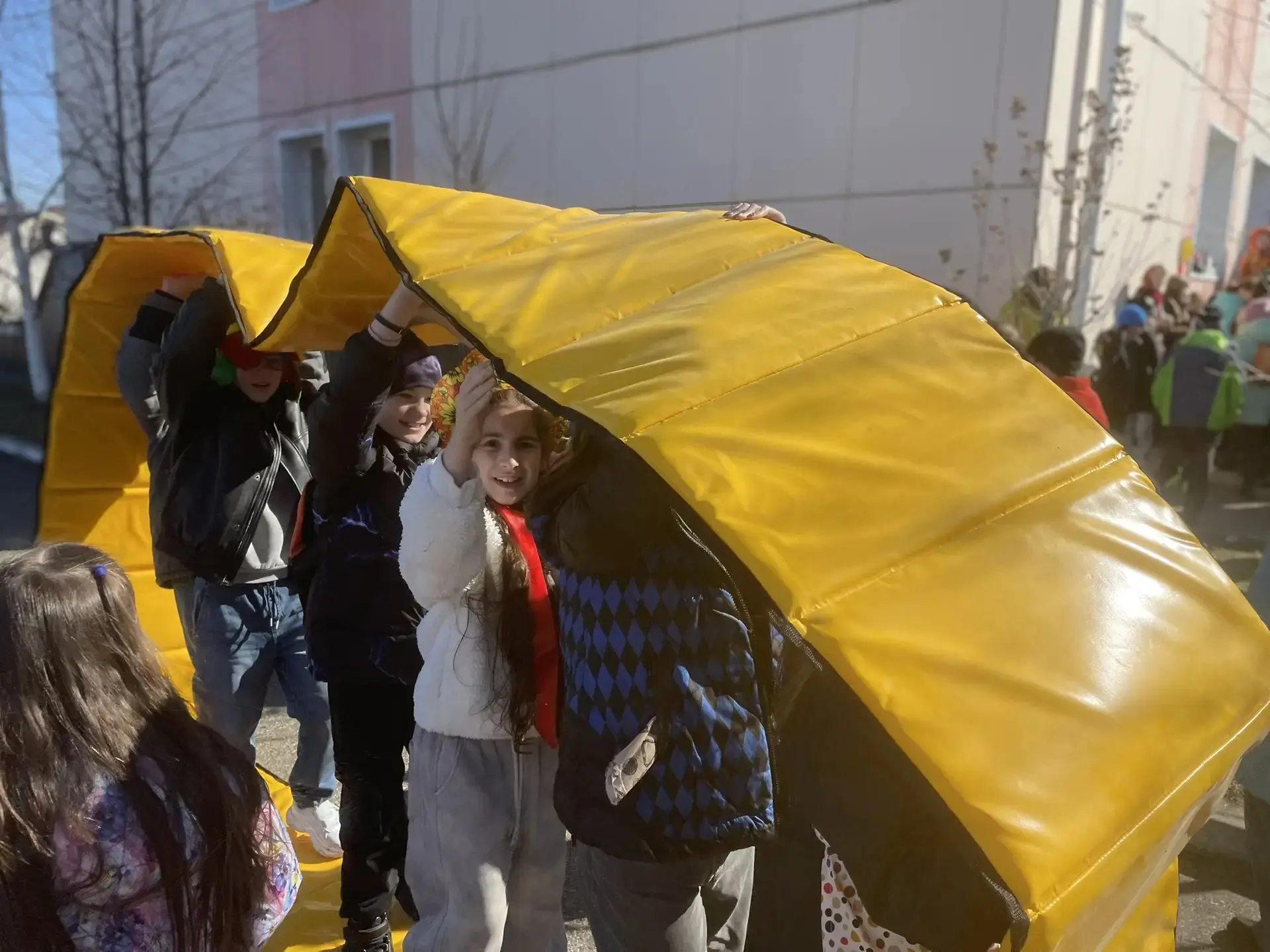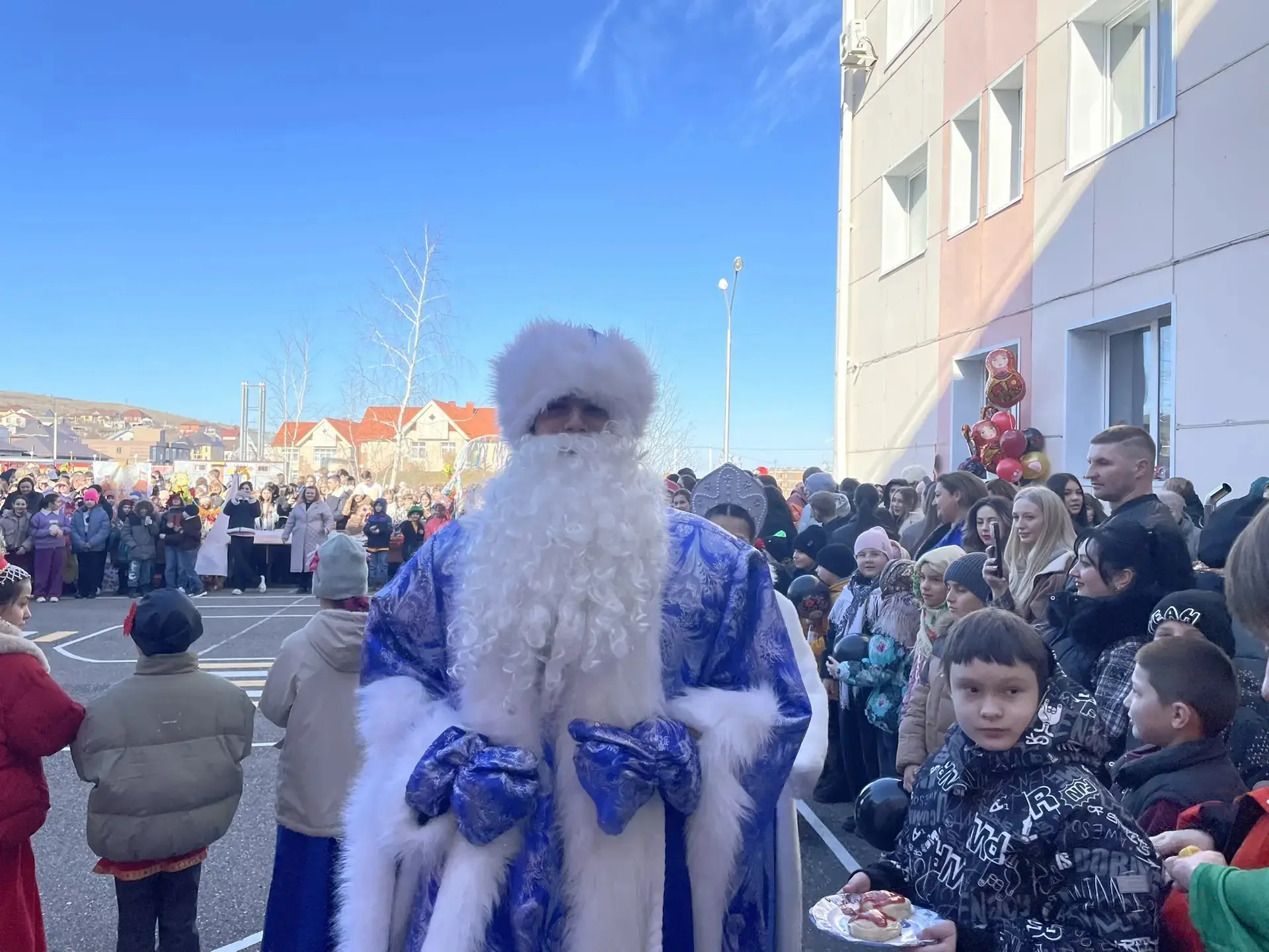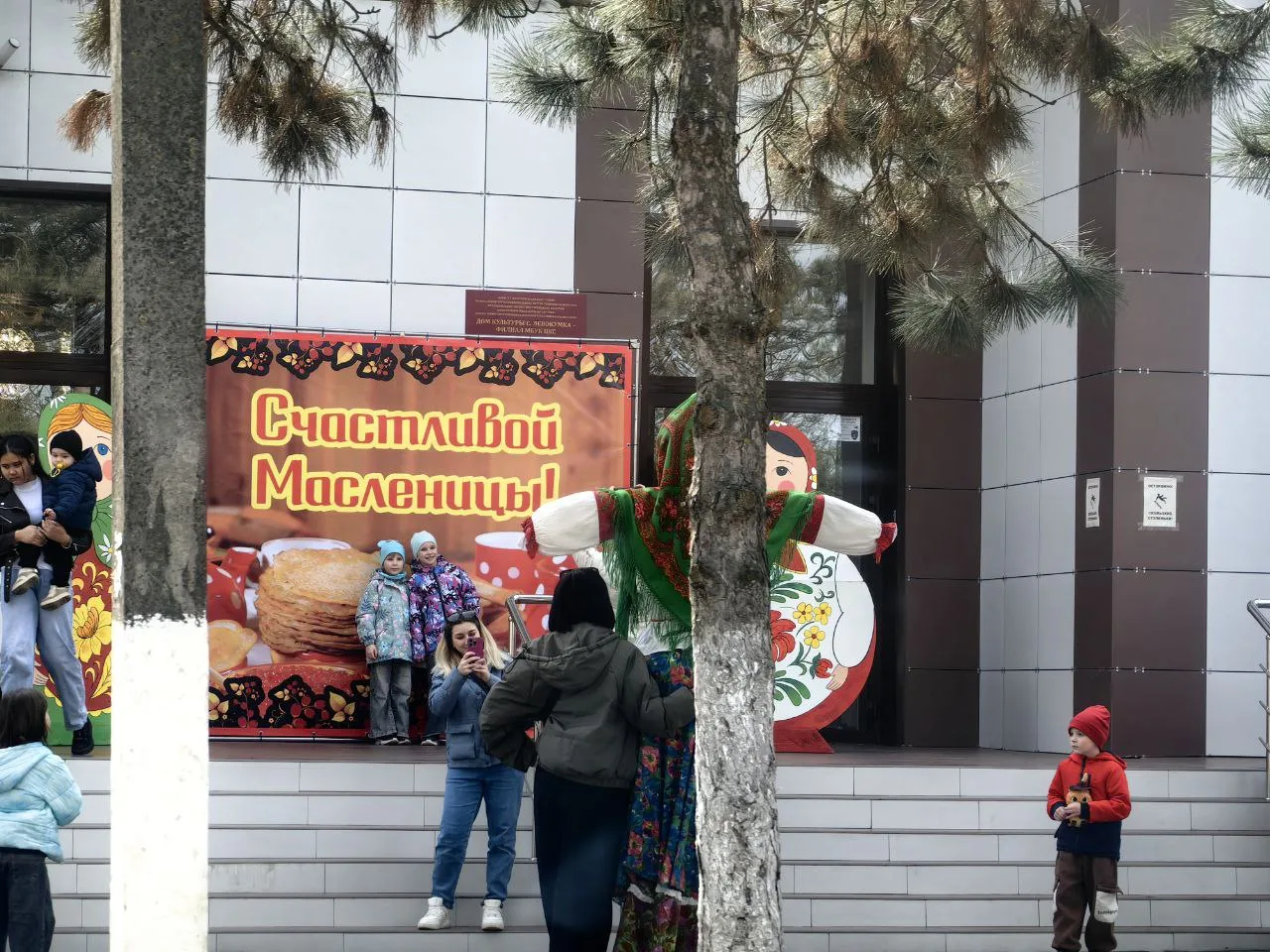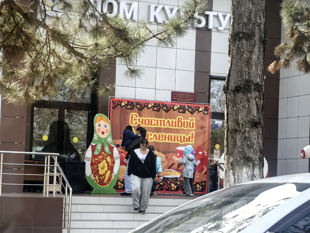 Возле дома культуры царила праздничная атмосфера: жители собрались вместе, чтобы отметить этот весёлый праздник.